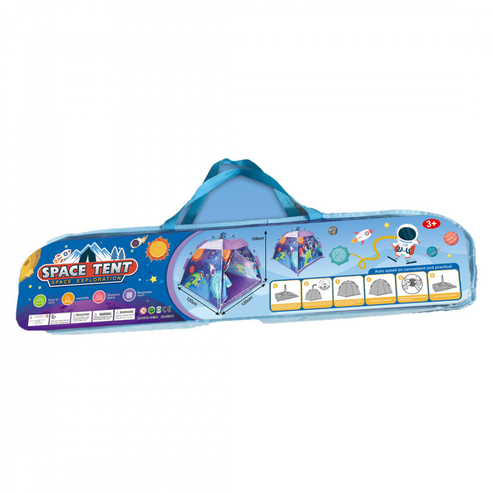 A sátor praktikus hordtáskában érkezik, amely megkönnyíti a tárolást és a szállítást. Ajánlott 3 éves kortól, és tökéletes ajándék lehet a kreatív játék és az űrkutatás szerelmeseinek. Engedd szabadjára gyermekeid képzeletét ezzel a különleges játszósátorral!3 éves kortól ajánlott.A termék mérete kinyitva: 120x120x108 cmA termék csomagolása táskában: 77x16 cm