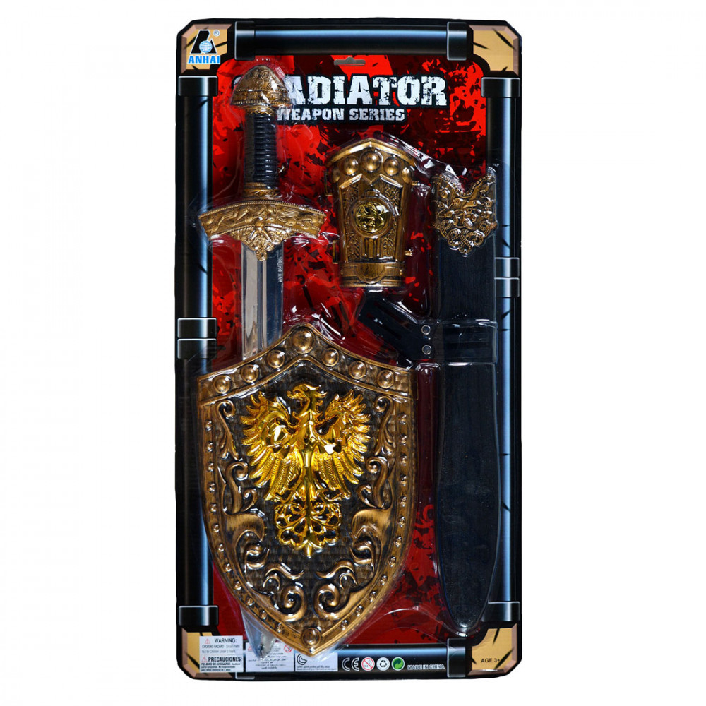 A gladiátorversenyen a győzelem nagyban múlik a felszerelésen. Legyen jó páncélod és erős fegyvered, ez az alap. Ha mindegy jól is néz ki, az már fél siker. Próbáld ki ezt a szettet, és legyél te az aréna legjobbja. A játék csomagolási mérete 63x33x3 cm. A pajzs magassága kb. 31 cm. A játék tömege 435 g.