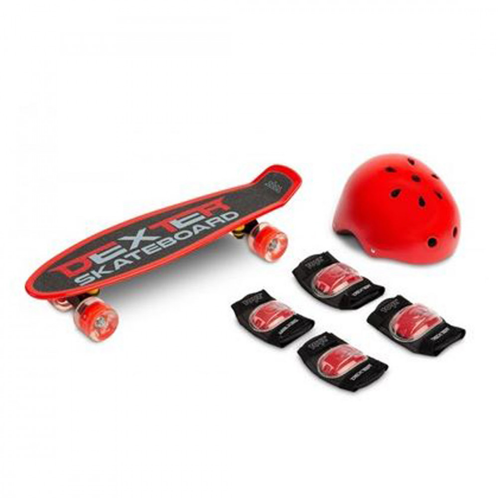 A Dexter a klasszikus gördeszka kedvelt és divatos variációja, mely tökéletesen fejleszti a gyerekek mozgáskoordinációját. Kis méretének és könnyű súlyának köszönhetően a gyerekek bárhová magukkal vihetik. A gördeszka erősíti az izmokat és edzi az egyensúlyt. A széles kerekek megkönnyítik az egyenetlenségek leküzdését, a bennük elhelyezett LED diódák pedig kellemesebbé teszik az esti utazást. A deszka fedélzete strapabíró műanyagból készült, és speciális csúszásgátló matricával van bevonva. A gördeszkához sisak (50-54 cm-es méret) és könyök- és térdvédő tartozik.