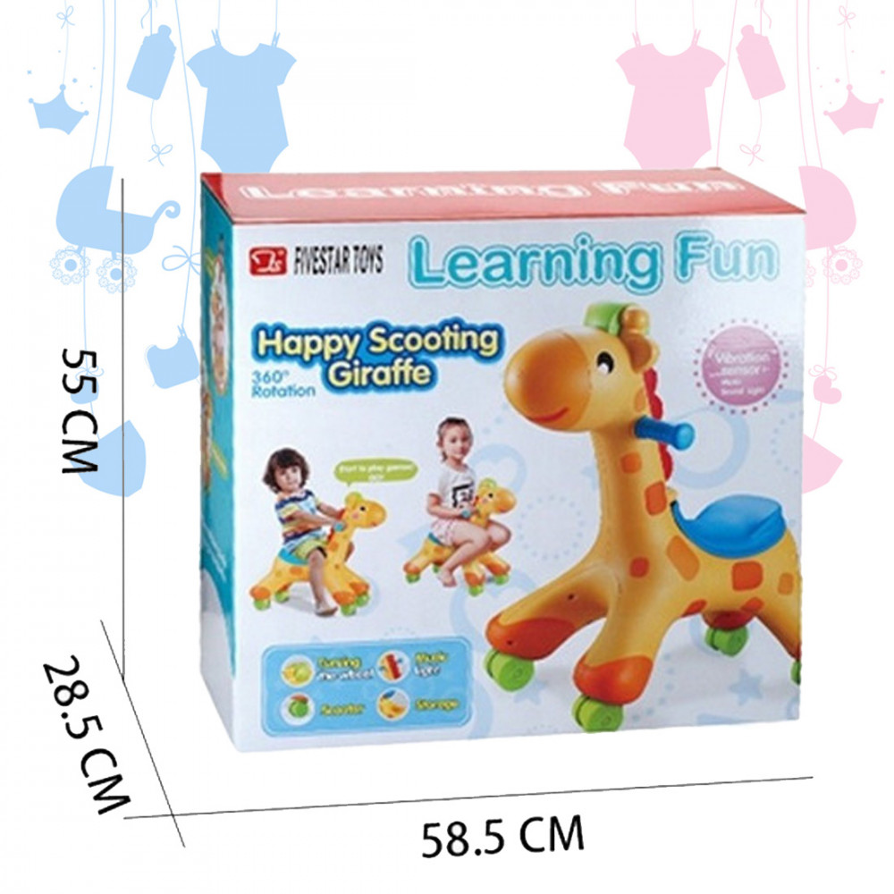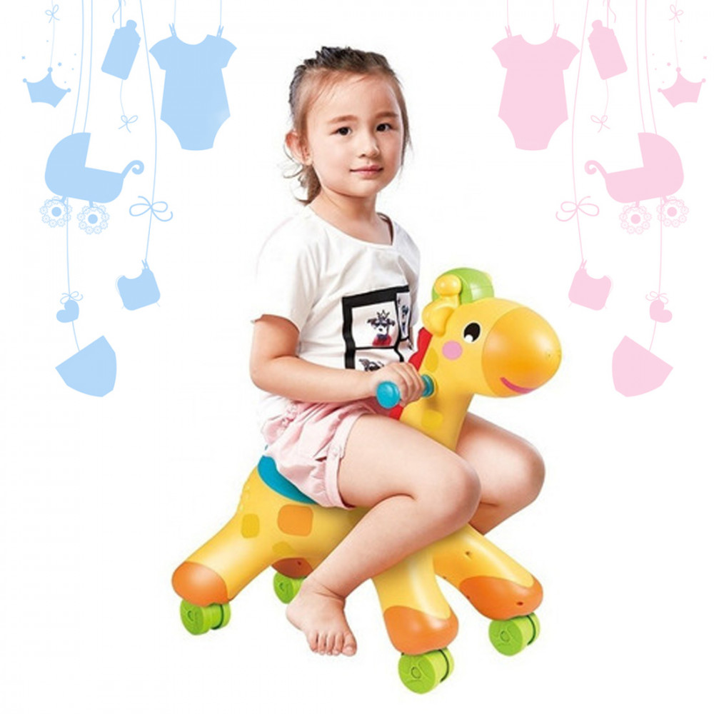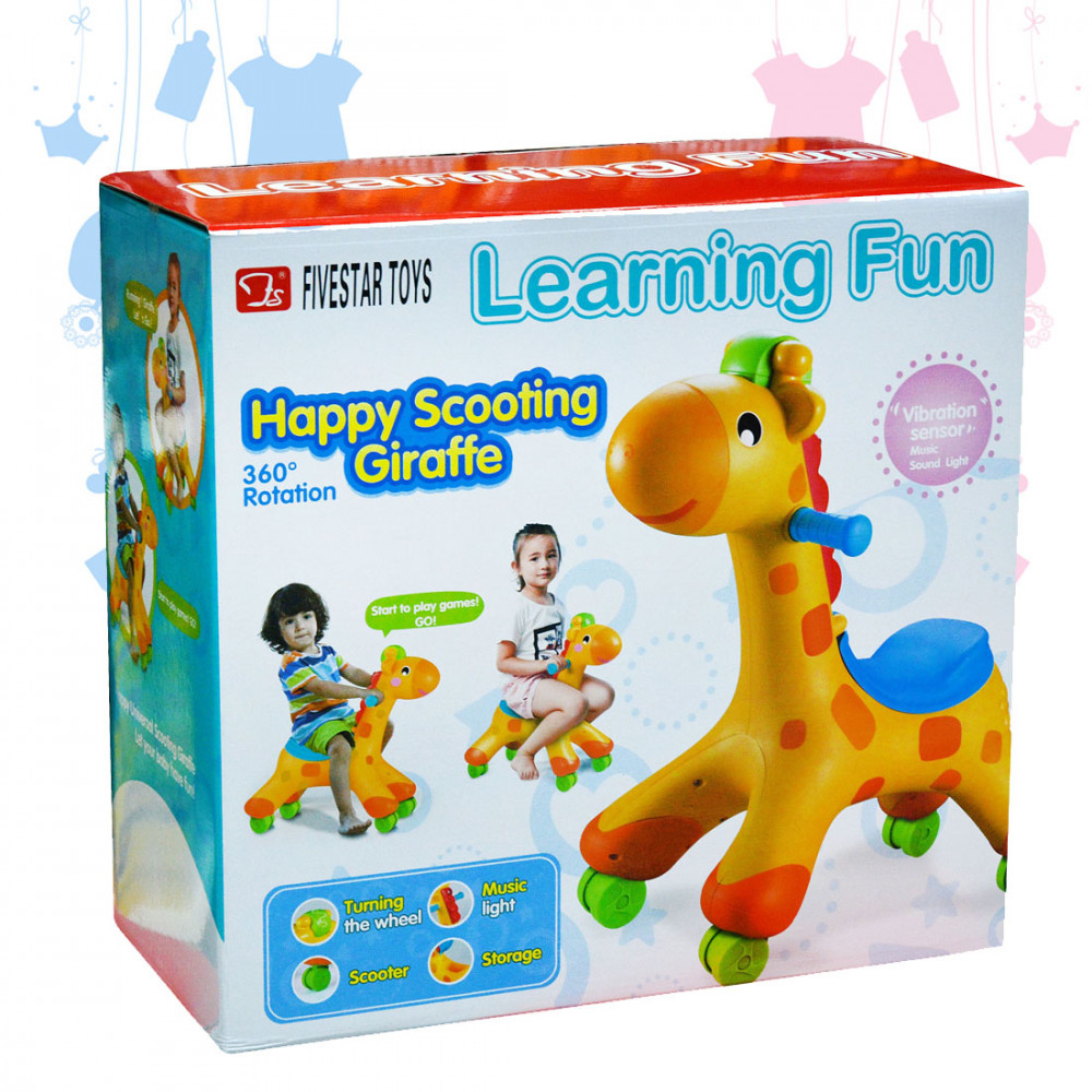 Szuper menő gurulós zsiráffal bárhova eljuthatsz, ahová csak akarsz. Sőt 360° -ban tud elforfulni. Kedvenc robogód zenél, hangot és fényt ad ki.