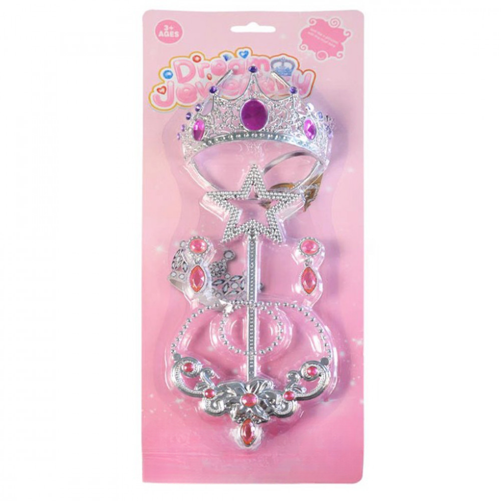 Egy nagyon csillogó és igazán hercegnős ékszer szettel lehet most gazdagabb gyermeked. Ebben a szettben ugyanis csodaszép kiegészítők találhatóak, melyek tökéletesek lehetnek az otthoni játék során is, valamint akár egy jelmezes parti alkalmával is. A korona csodás kövekkel lett feldíszítve, melyek nagyon jól mutatnak együtt, ráadásul még egy hercegnői jogar is a szett része. Ezen kívül egy csillogós fülbevaló és más kiegészítők is megtalálhatóak benne.