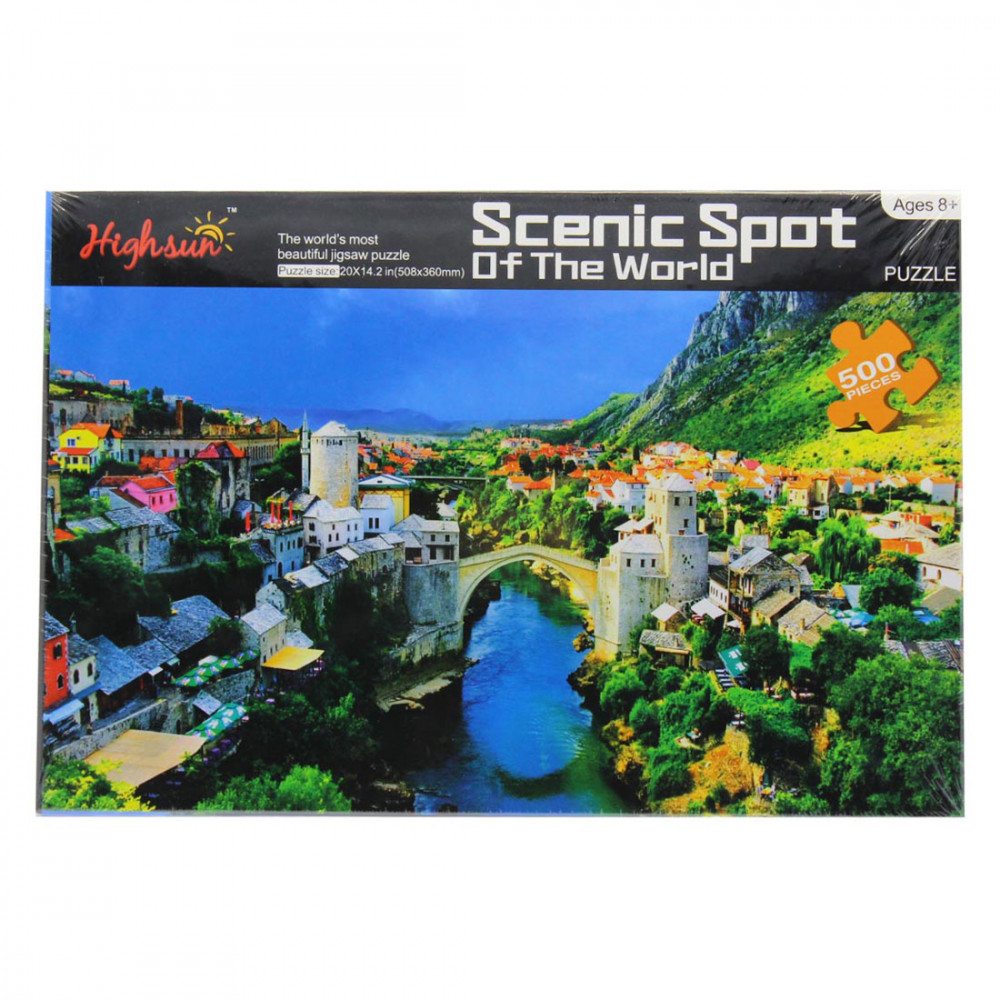A mostari híd látképe kerekedik ki a szemünk előtt, ha kirakjuk ezt az 500 darabos puzzle-t. A játék kezdőknek jó kihívás, gyakorlottaknak pedig kiváló időtöltés. A végeredmény pedig egy szemet gyönyörködtető tájkép.