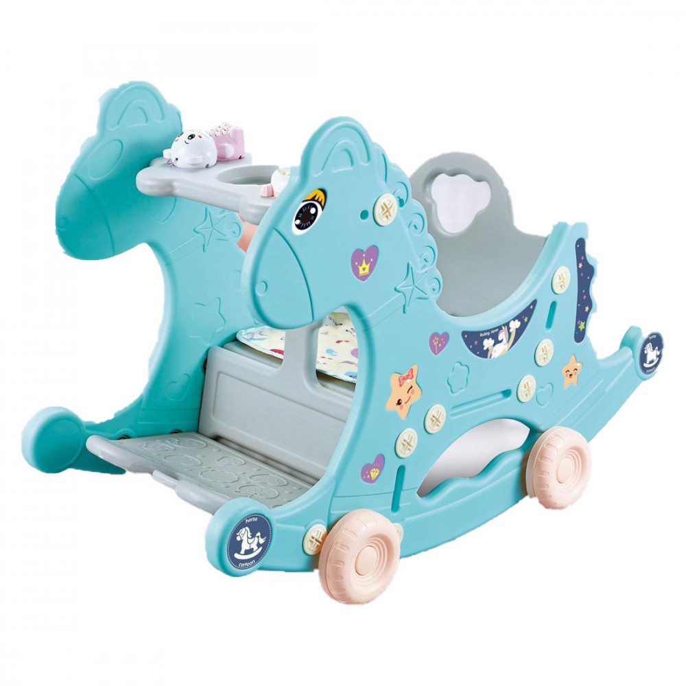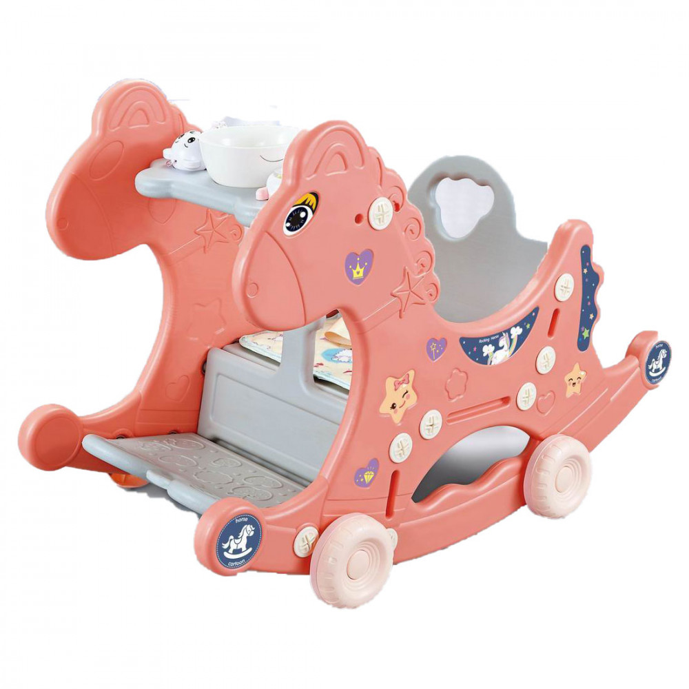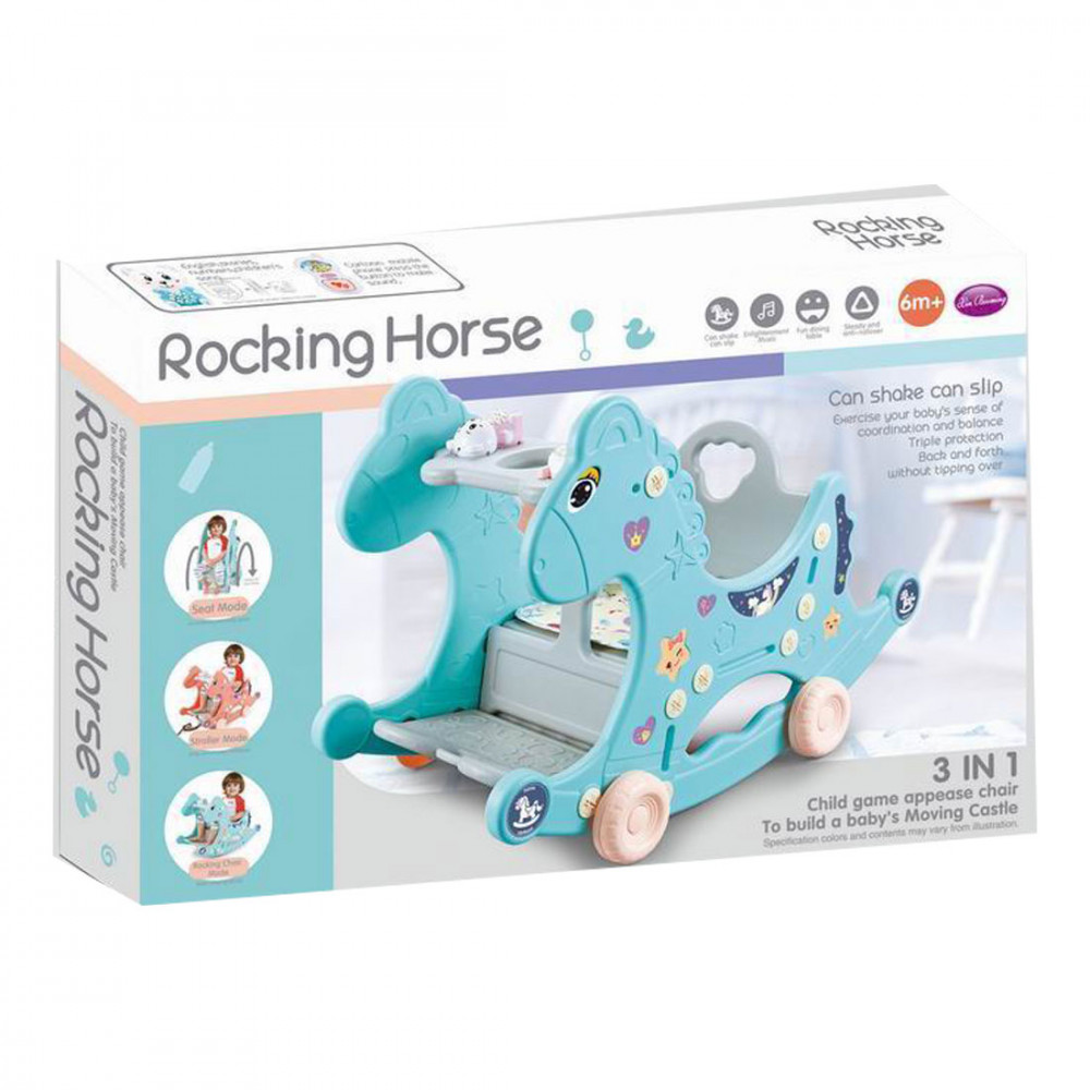 Csipogó és zenélő található a csomagban, amelynek a hintaló tálcáján van kialakított helye. A lovat lehet húzni egy madzaggal, amely a gyermeket rendkívül szórakoztatja, valamint a kerekei leszerelését követően a klasszikus hintaló funkciót is betölti a játék.