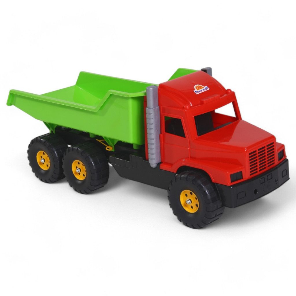 Vezesd be gyermekedet a nagy építkezések világába ezzel a lenyűgöző, 80 cm hosszú dömper alakú játékkal! A masszív jármű három különböző, vidám színkombinációban érhető el: piros-kék, piros-zöld és kék-sárga, amelyek garantáltan feldobják a játék hangulatát. A dömper kiváló minőségű műanyagból készült, így strapabíró és hosszú élettartamú, akár a legvadabb homokozós kalandokhoz is.