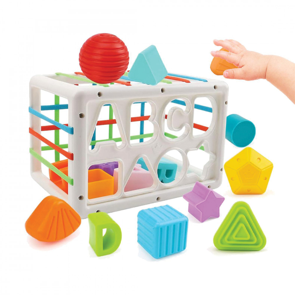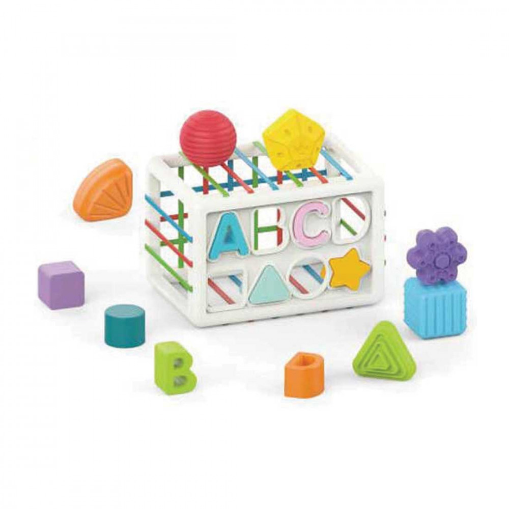Ez a készségfejlesztő kocka felkelti a kicsik figyelmét. A kocka oldalain rugalmas szalagok és különböző formájú lyukak találhatók. A gyerekek betolhatják és kihúzhatják a kockákat. Segít fejleszteni a gyermek szem-kéz koordinációját és fejleszteni a finommotorikát.