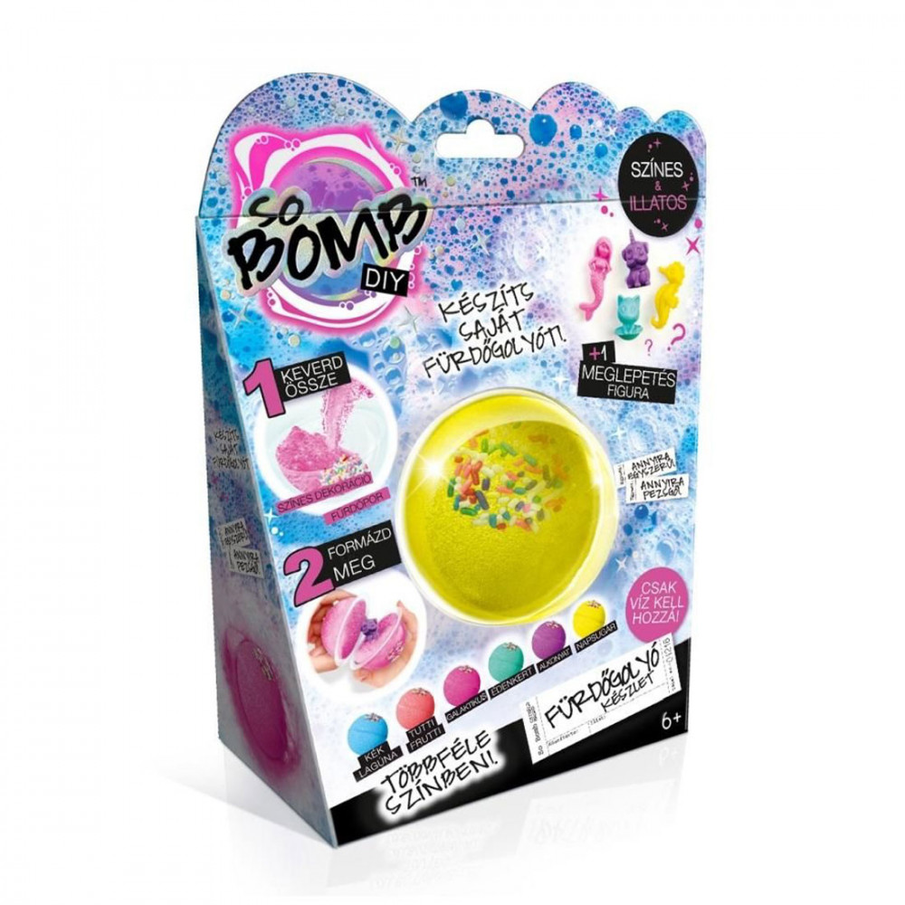 Készítsd el saját színes és illatos fürdőgolyódat, hiszen annyira egyszerű, annyira pezsgő! Ebben a készletben mindent megtalálsz, csak egy kevés vizet kell még hozzáadnod és a leírásban szereplő lépeseket követned, hogy egy 6 cm nagyságú fürdőgolyókat készíthess!A fürdőgolyóhoz egy meglepetés figura is tartozik, amit elrejthetsz benne. Persze egy kis csillogás és díszítés minden fürdőgolyót színesebbé tesz, hogy fürdés előtt még látványát is élvezhesd.Tölts a kádba vizet, dobd bele a fürdőgolyódat, hogy az pezsegve feloldódhasson! Ugye milyen jó saját fürdőgolyód elkészítése után egyet lazítani? A pezsgő hatás garantált!