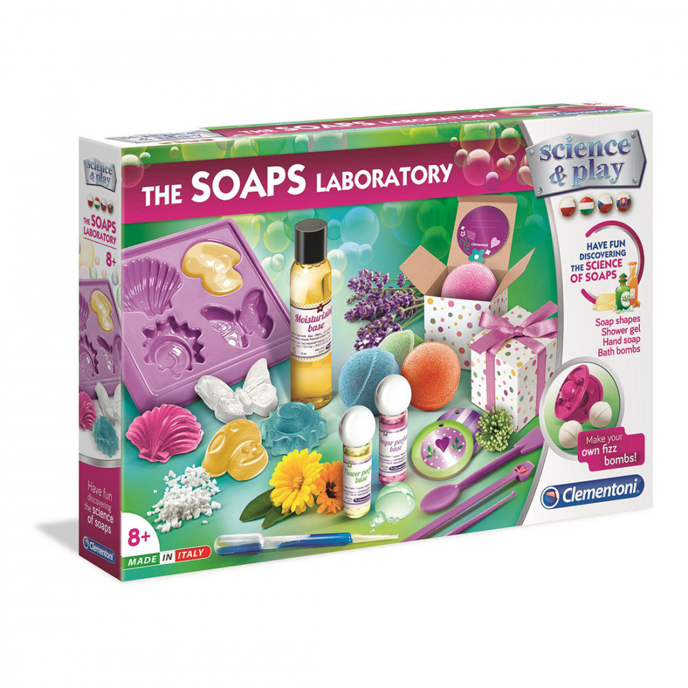 A fantasztikus Clementoni Gyerek laboratórium – Szappan készítő készlettel sok szórakozásban lesz részed szappanok, tusfürdők és illatos fürdőbombák készítése közben. Ne félj kísérletezni! Keverd össze az illatokat és a lágyító összetevőket, és készítsd el a saját egyedi termékedet.