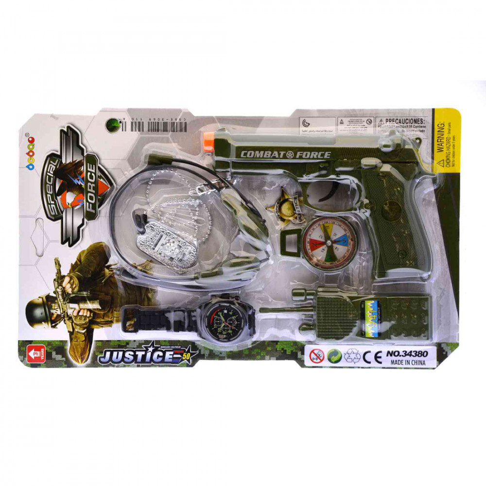 Gyermeked oda van a katonás játékokért? Akkor ezzel a katonai felszereléssel maximálisan átélheti, hogy milyen egy igazi kiskatonának lenni!A katonai felszerelés terepmintás fegyvert, kézi adó-vevőt, órát és iránytűt is tartalmaz, így fokozva a játékélményt. Bújjatok bele egy igazi katona bőrébe és játszatok el egy háborút, ehhez pedig minden eszköz a segítségetekre lesz.