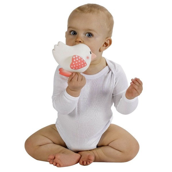 Ez az édes kis madár a legkisebbek kedvence lesz, hiszen puha, csipog, és akár rágókának is megfelelő. Természetes kaucsukból és gumiból készült, ezért akár már az első naptól oda lehet adni a kicsinek.