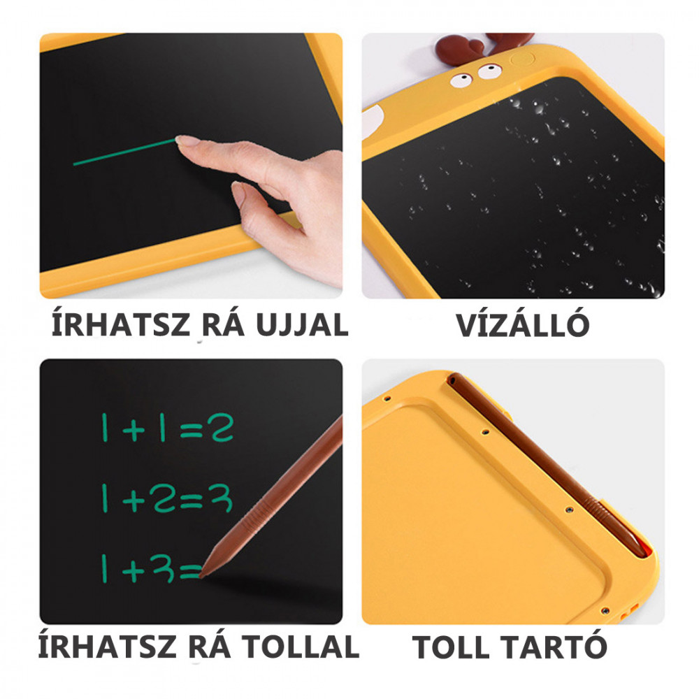 Szuper cuki LCD PAD a kicsiknek. Bármit rajzolhatsz rá, vagy írhatsz is. Kék fény szűrő is van benne, hogy védea szemed. Írás rögzítő-törlővel. A játék elemmel múlódik, amit a csomagolás nem tartalmazz.A csomagolás mérete: 15x26 cm