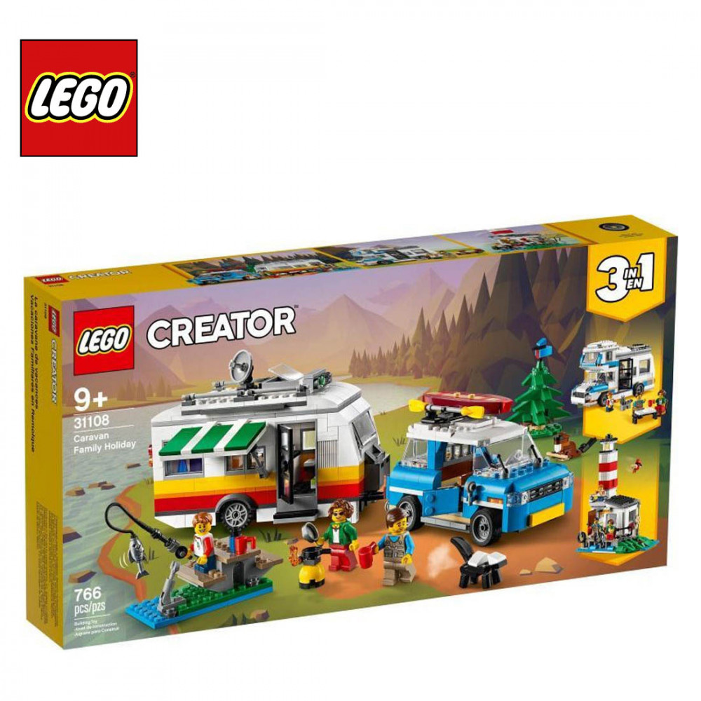 A LEGO® Creator 3 az 1-ben Családi vakáció lakókocsival (31108) készlet kreatív játékra bátorítja a gyermekeket, hiszen 1 csomagban 3 modellt találnak: egy családi lakókocsit retró autóval, egy lakóautót vagy egy világítótornyot. Az építés és átalakítás végtelenné varázsolja a játékot!