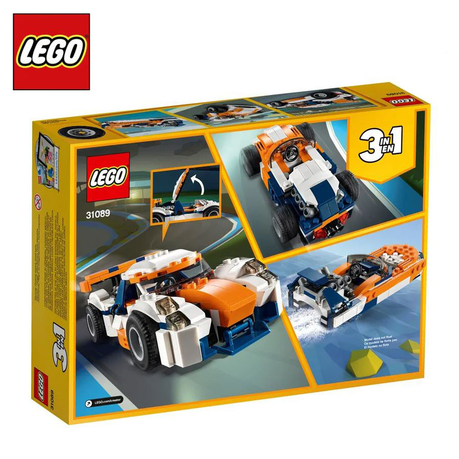 A LEGO 31089 Sunset versenyautó fő jellemzői7 évesnél idősebb gyermekek számára alkalmasEgyetlen építőkészlet többféleképpen is megépíthetőFejleszti a kreativitást és serkenti a képzelőerőtA LEGO Creator Sunset versenyautó fejleszti a finom motorikátA kockák száma - 221 db