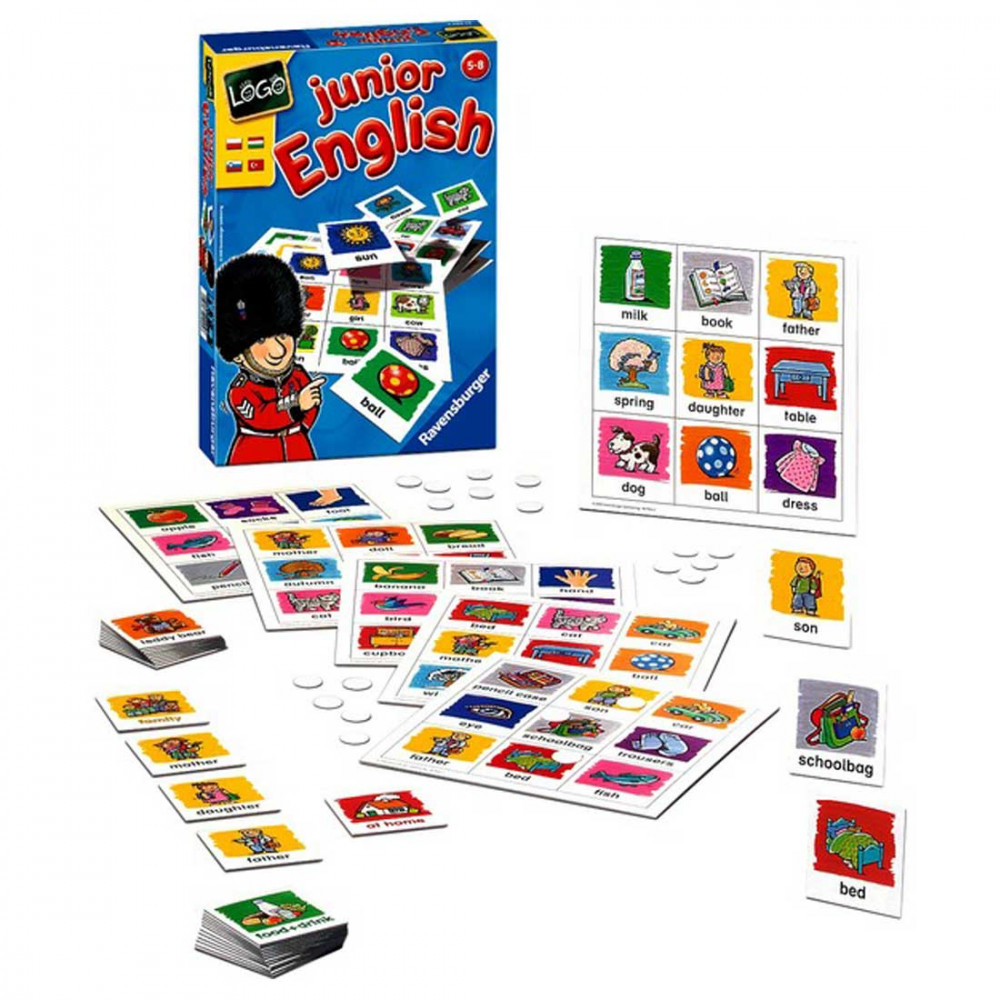 A Logo Junior English társasjátékkal gyorsan és szinte észrevétlenül tanulhatjátok meg a legfonosabb alap szavakat angolul, miközben memóriajátékot vagy bingót játszhattok a kártyákkal.