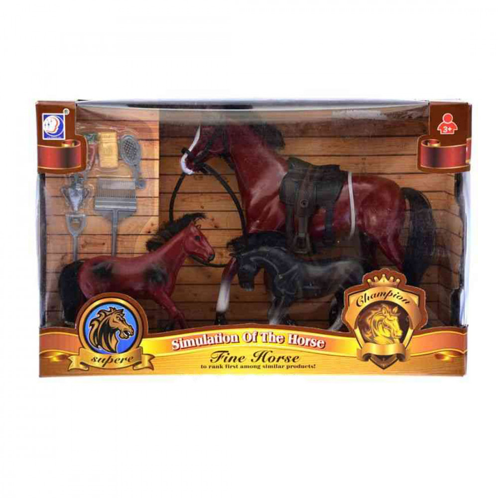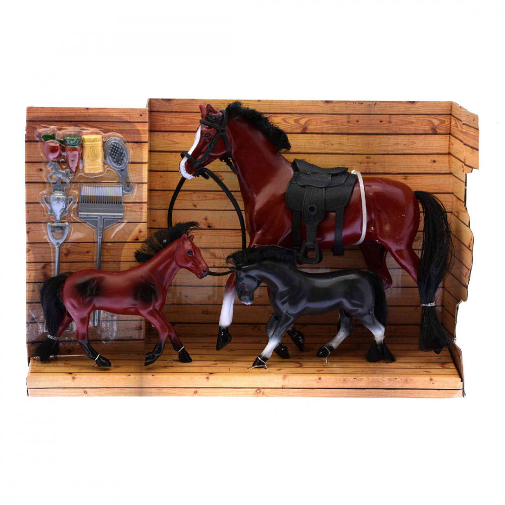 Rendezz be egy lovardát csikókkal és a mamájukkal! A Ló család figurakészlet műanyagból készült pónikat és egy lovat tartalmaz, amiket bármilyen farm készlettel együtt tudsz használni. A lovak szép festéssel készültek, igényes és részletgazdag kidolgozással. Ültesd rájuk kedvenc játékfiguráidat, induljon a lovaglás!
