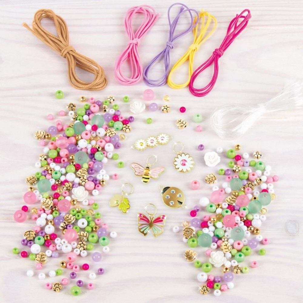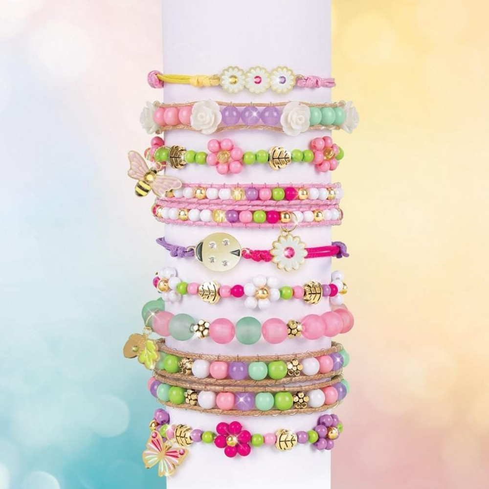 A dobozban a különböző méretű, hagyományos gömbformák mellett egyedi gyöngyöket is találsz. Tedd különlegessé a karkötődet margaréta virág, levélke, pillangó, méhecske és katica alakú elemekkel és medálokkal. A fehér, rózsaszín, lila és zöld szín kavalkád varázslatos lányos, tavaszi hangulatot ad megjelenésednek, bárhol is viseld az elkészített ékszereid.