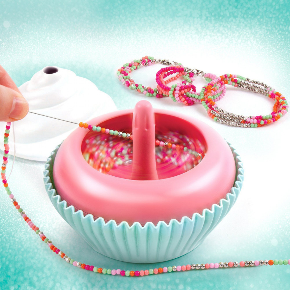 A cupcake tölcsér teteje könnyedén tisztítható. A gyöngyök és csatok 20 karkötő elkészítéséhez elegendőek.