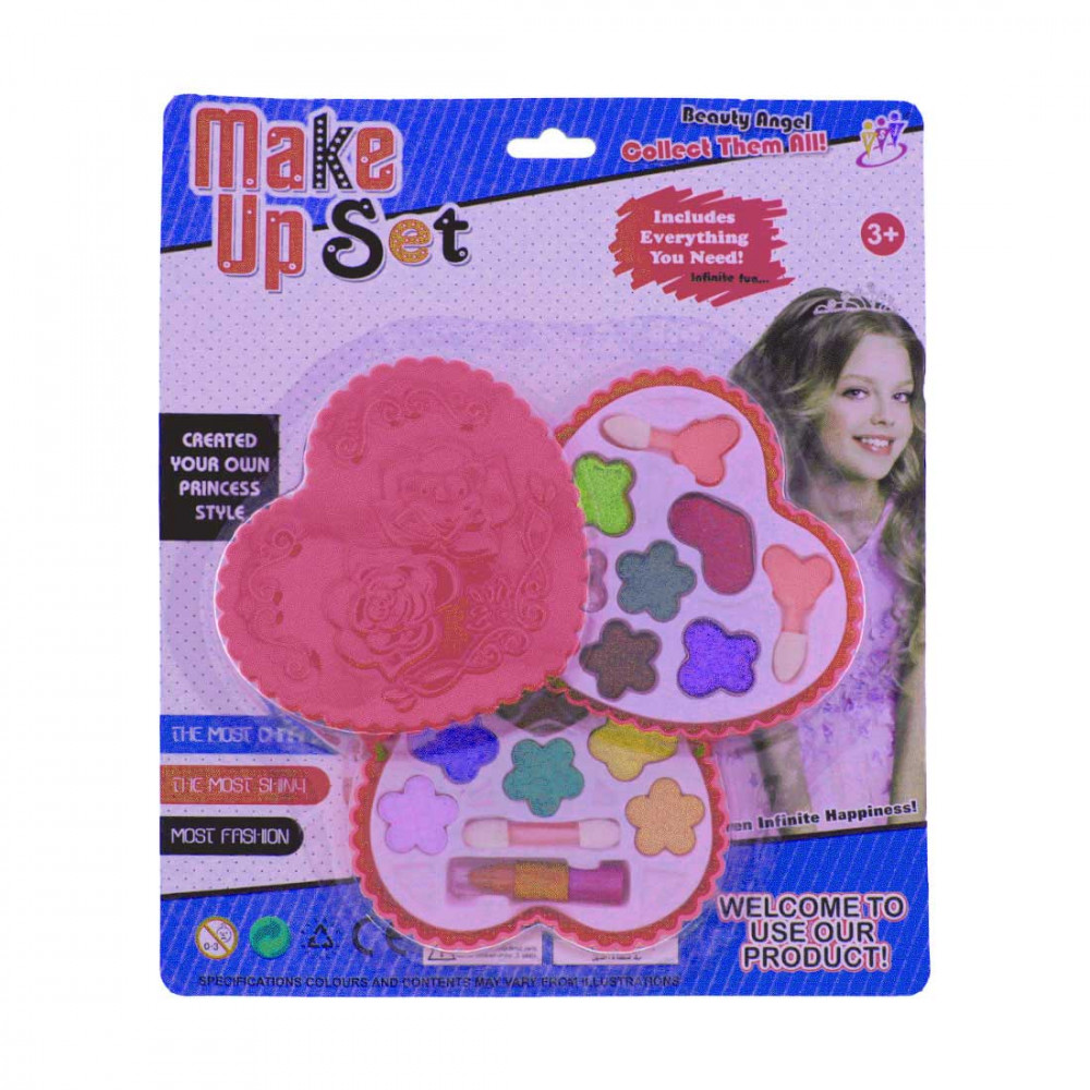 A sminkeket egy kétemeletes, rózsaszín, szív alakú palettába rejtettük neked, amit magaddal vihetsz bárhová. Sminkeljetek közösen a barátnőkkel, nézzétek meg, kinek melyik színek állnak jól!
