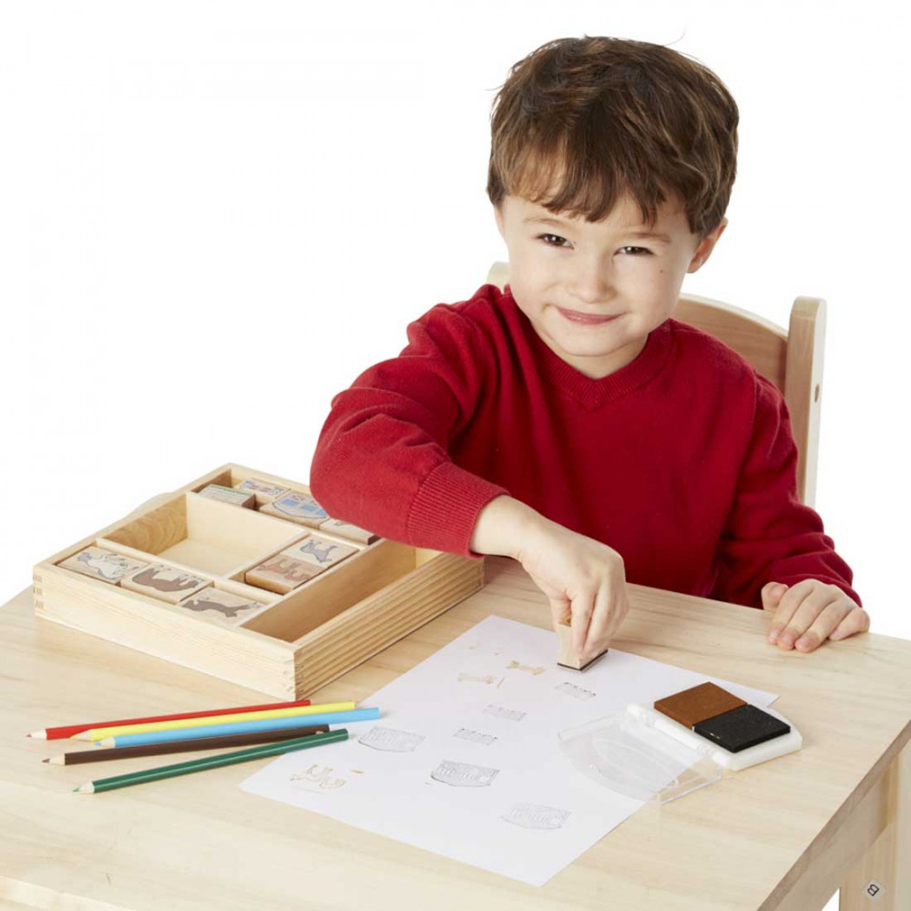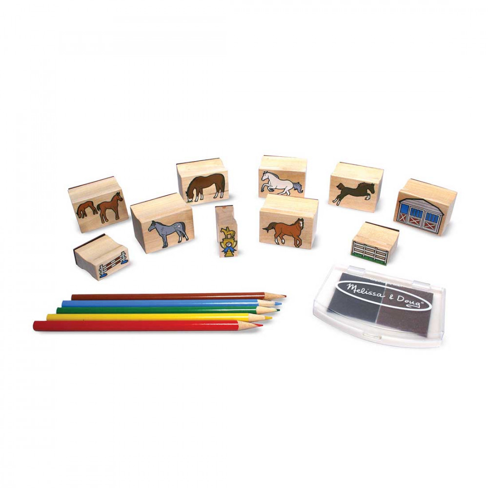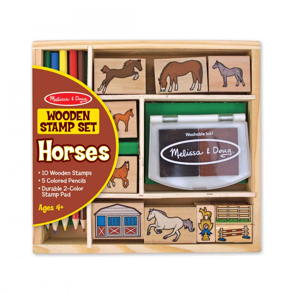 Tereld egy karámba lovaidat ezzel az elragadó lovas nyomdakészlettel, mely tartalmaz istállót, karámot, ugratót és hat különböző lófajta rajzát. Keverd össze, majd párosítsd a részletgazdag nyomdákat, és találj ki igazán izgalmas történeteket a jelenetekhez. A készlet minden darabját, így a két színt tartalmazó tintapárnát is egy nagyon tartós fadobozban tudod tárolni. Mosható, nem tartalmaz mérgező anyagokat, ugyanakkor a tinta gyermekbarát.A készlet tartalma: 10 darab nyomda, 5 színes ceruza, 2 színes tintapárna.