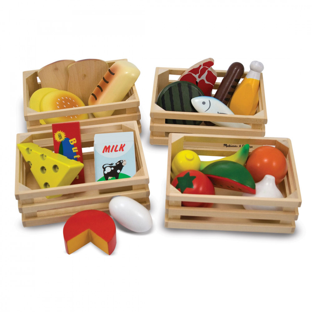 Ebben a szép kidolgozású, fából készült, festett játékban külön rekeszekben találjátok meg a fehérjéket, zöldségeket és gyümölcsöket, tejtermékeket és a gabonából készült ételeket. Ezáltal játszva ismerkedhettek meg az élelmiszerekkel, és azzal, hogy melyik miért jó nekünk.