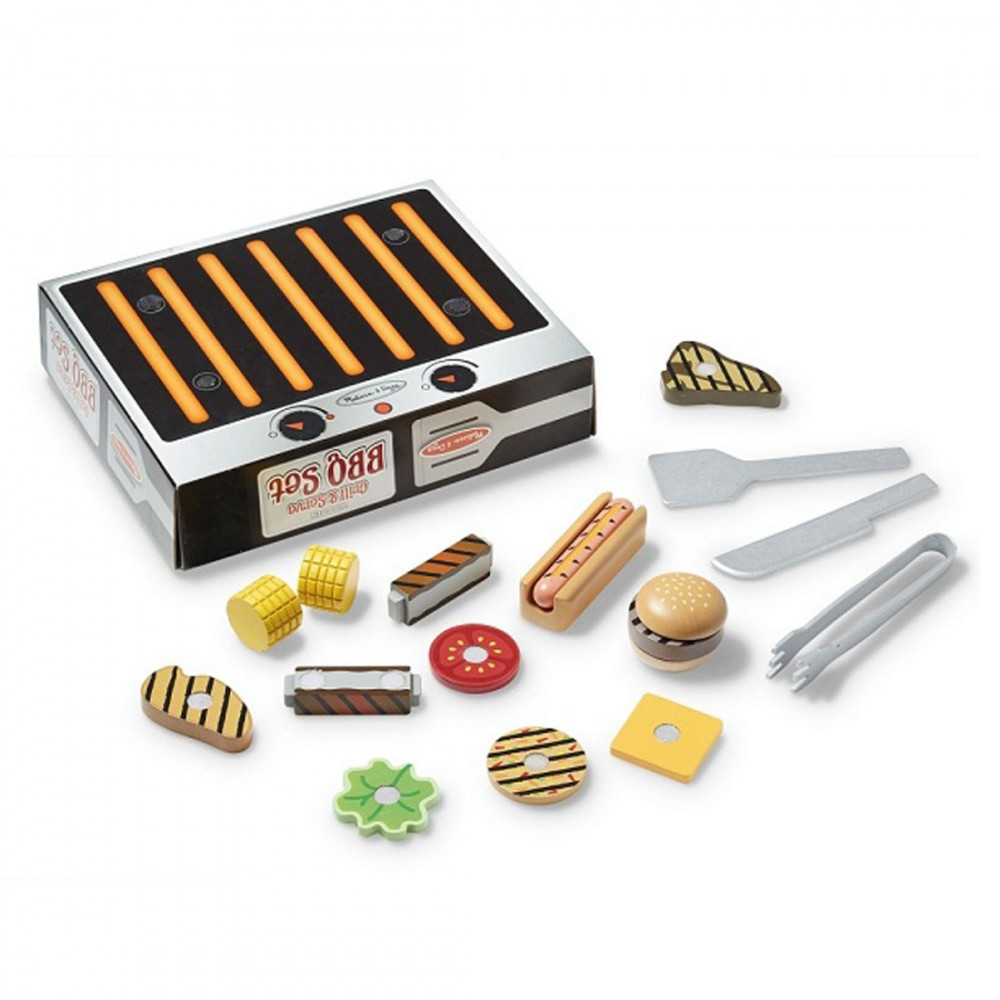 A 20 darabos faételkészlet olyan grill kedvenceket tartalmaz, mint például a hot-dog, hamburger, csirke, steak, oldalas, vega burger és kukorica, valamint ízletes önteteket és eszközöket is találtok ebben a készletben.