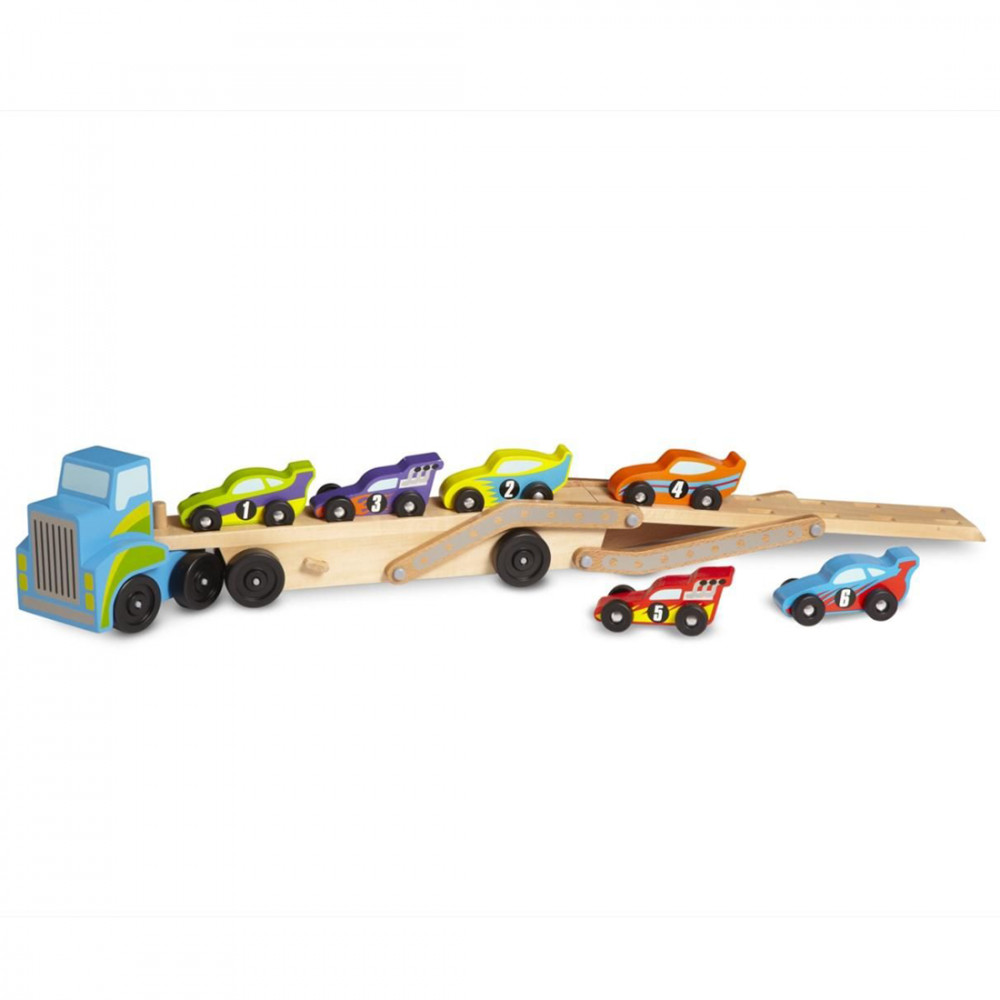 Ez az óriás autószállító 6 egyedi autóval a platóján korátlan játéklehetőséget biztosít gyermeke számára. Ereszd le a felső szintet, hogy a sportautók le tudjanak gördülni a platóról, majd versenyezz velük a szobában. A játék során gyermeke motoros képességei fejlődnek. A számos színnek, dizájnnak és számnak köszönhetően az autók csoportosíthatóak, sorba rendezhetőek, mely nagyon fontos kognitív készséget fejleszt, miközben gyermeke játszik. De kérdezd csak meg egy gyermekedet, hogy mi ebben az autószállító kamionban az igazán jó dolog és Ő egy sokkal jobb választ fog adni, mint mi! Hát az, hogy óriási (közel 80 cm hosszú) és szuper király!