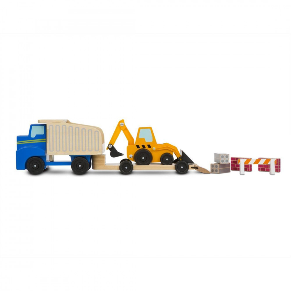 Irány az építkezés ezekkel a nehézgépekkel! A nyolcdarabos készlet tartalmaz egy homlokrakodót, egy síkágyas utánfutót és a teherautót, útterelő kordont, építő elemeket, amivel igazán izgalmas lehet a játék. Legyen az vontatás, markolás vagy szállítás, gyermeked remekül fogja idejét tölteni ezekkel az építkezési helyszínre felvonultatott járművekkel. A teherautó billenthető, az utánfutó leválasztható a tehergépkocsiról, és egy lehajtható rámpa is van rajta, a homlokrakodó karjai és markolója fel tudnak emelni és markolni mindent! Mindhárom jármű minőségi fakerekeken gurul és a gyermekek számára könnyen megfogható, irányítható. Ez a klasszikus gyerekjáték támogatja a koordinációs képességet, fejleszti a finom motoros készséget és ösztönzi a képzelőerő használatát.