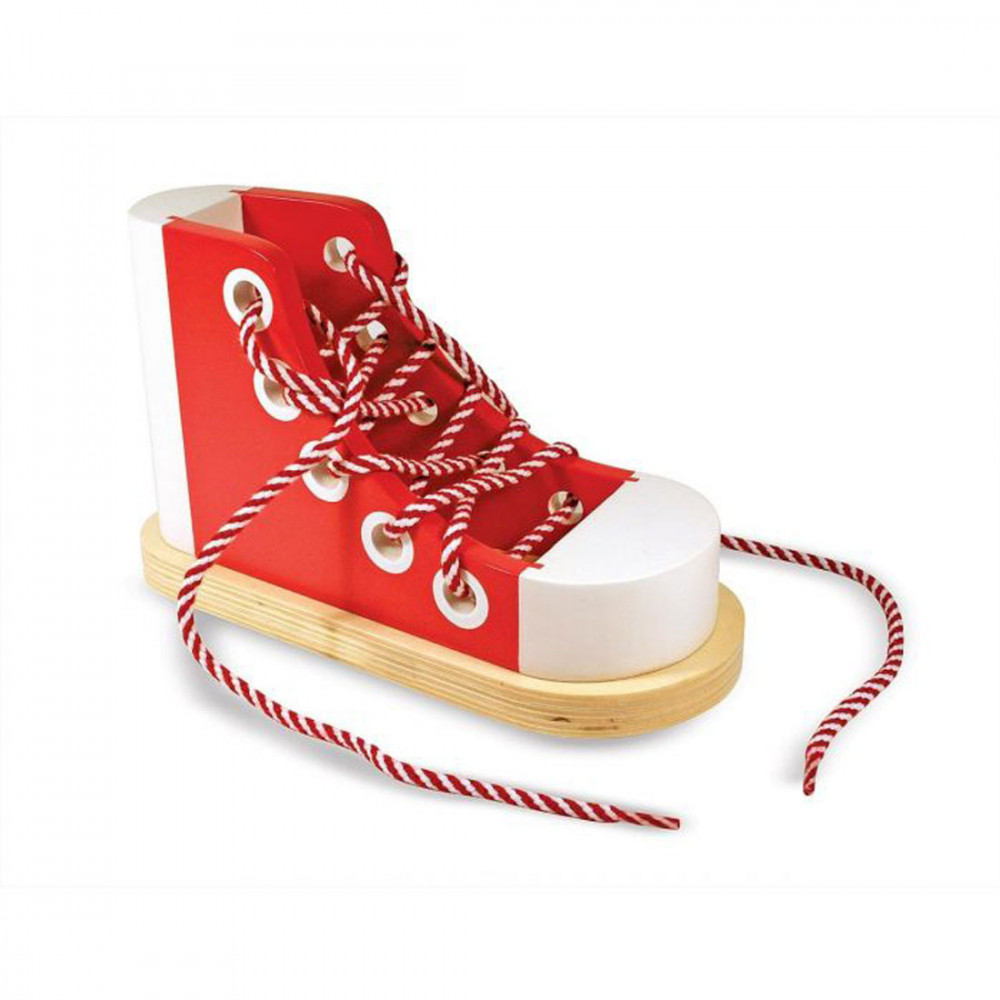 Ez a minőségi fából készült magas szárú cipő élvezetessé teszi a gyakorlást, miközben segíti gyermekedet a cipőfűzés és csomózás minden praktikájának elsajátításában.