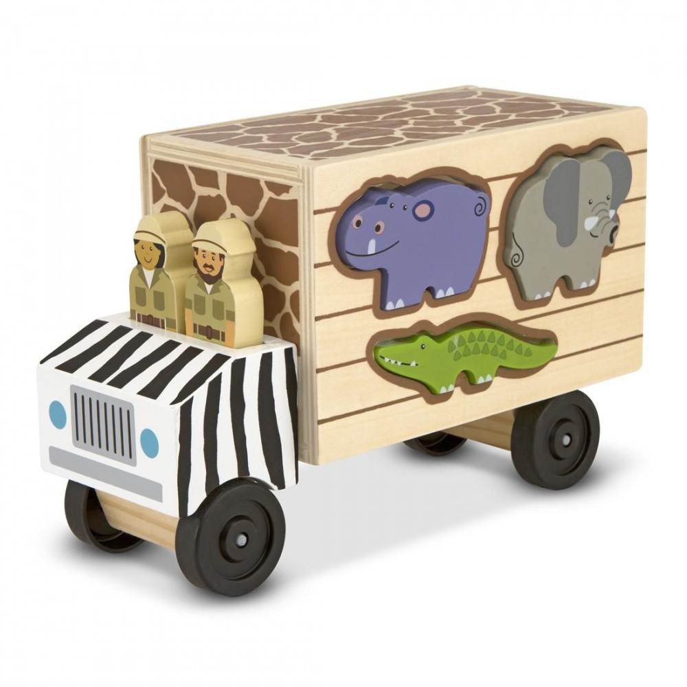 Szafari állatok formaillesztő játék a Melissa & Dougtól. Az állatmentők készen állnak a szafari állatok megmentésére. Ezzel a strapabíró szafari kamionnal két kedves ember pásztázza a terepet, hogy szükség esetén az állatok segítségére siessen. Az aligátor, a zebra, rinocérosz, elefánt, zsiráf, víziló és az oroszlán tökéletesen beférnek a kamion oldalába vágott lyukakon. A játék kiválóan alkalmas szerepjátékokhoz, és fejleszti a finommotorikus képességet. Emeld fel az utánfutó fedelét és vedd ki a színes állatokat, majd számold meg őket, mielőtt visszahelyeznéd és rájuk zárnád a fedelet. A férfi és női állatmentő pont befér a kamion kabinjába. A szerepjáték megerősíti az alapképességeket és kreatív játékra ösztönöz. A szett 7 állatfigurát, 2 ember figurát és egy felemelhető ajtajú kamiont tartalmaz.