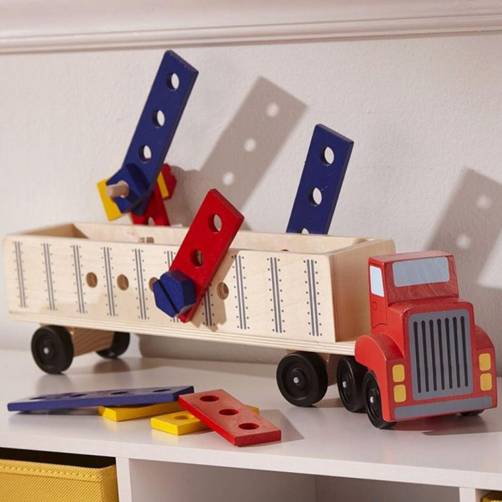 Ez a tartós, kétrészes pótkocsis autó útra kész... és készen áll az építkezésre! Megrakodva fa építési anyagokkal, és ellátva a csavarok és anyák számára előre megfúrt lyukakkal, a kamion egy valódi mozgó építési terület. Illeszd a festett építőelemeket a kamionhoz, és máris egy színes szerkezetet kapsz, ami kerekeken gurul! Az építőjáték 22 darabja – beleértve egy kalapácsot, csavarhúzót, csavarkulcsot, deszkát, szöget, anyát és csavarokat – a pótkocsi belsejében tárolható, így a kis építőmester a következő nagy munkához rendszerezetten tudja tárolni az építőkészletét. A Melissa & Doug Kamionszerelő autó játékkészlet kiválóan alkalmas a finommotoros készségek, a kéz-szem koordináció és a problémamegoldás fejlesztésére, ösztönzi a képzeletbeli játékot és a kézügyességet.Részletek:- Fajáték és szerszámkészlet egyben- Tartalmaz nyerges vontatót, pótkocsit és 22 fa barkácselemet- Simán gördülő kerekek- Erős faszerkezet- Nagyszerű a finommotoros készségek, és a problémamegoldás, valamint képzelőerő fejlesztéséreA játék számtalan formája:- Kérd meg a gyermeket, hogy számolja meg az eszközöket, és azonosítsa be azokat.- Kérd meg a gyermeket, hogy rendezze a darabokat szín szerint csoportosítva. Számolja meg az egyes darabokat színcsoportonként és az összes elemet is egyben.- Kérd meg a gyermeket, hogy rögzítsen két elemet egymáshoz anyával és csavarral. Kérd meg a gyermeket, hogy rögzítse a csatlakoztatott darabokat a kamionhoz.- Helyezz négy elemet a gyermek elé. Kérd meg a gyermeket, hogy tanulmányozza a darabokat, majd csukja be a szemét, amíg eltávolítasz közülük egyet. Kérd meg a gyermeket, hogy nyissa ki a szemét, nézze meg újra, és azonosítsa, hogy melyik darabot távolítottad el.