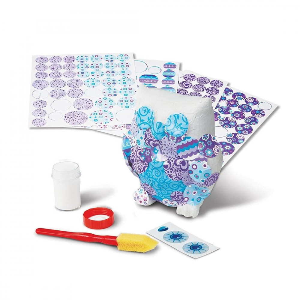 Soha nem volt még ilyen mókás és szórakoztató, de leginkább könnyű a patchwork munka! Előre kivágott, kör alakú, különböző méretű, valamint 8 különböző mintájú papírt lehet felragasztani a bájos kis papírmasé állatfigurára. Ha átfedéssel ragasztod fel a papírkorongokat, akkor igazán egyedivé varázsolhatod a kis figurádat. A habszivacsos fejű ecset segítségével könnyedén és koszmentesen fel tudod vinni a dekupázs ragasztót. A munka zárásaként ragaszd fel a kis állatka kifejező szemeit, valamint kösd nyakába a szalagot. Az állatfigura 12,5 cm magas.Mérete: 25 x 23 x 9 cm