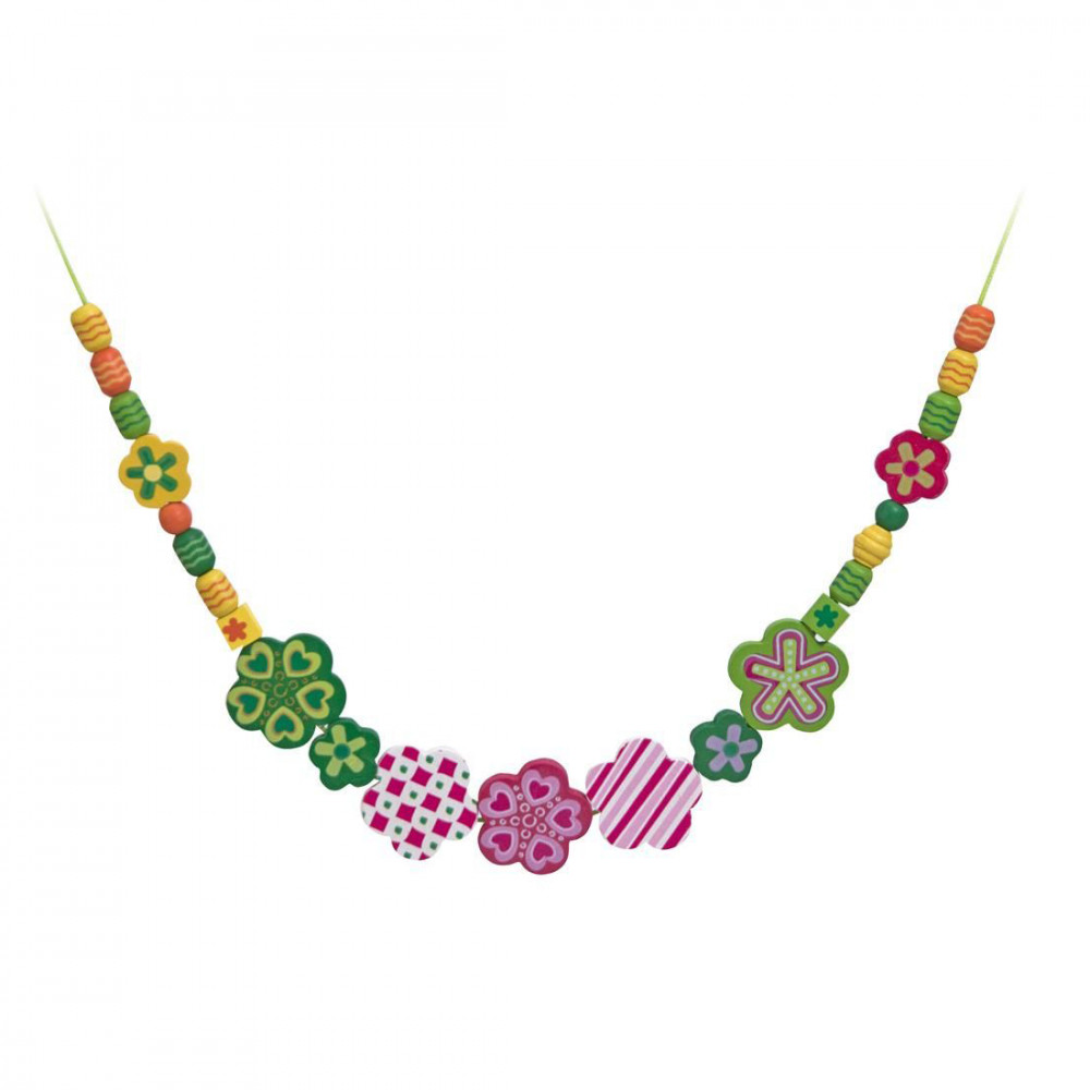 Gyermeked kreativitása kibontakozik ezzel a vibrálóan színes, minőségi fából, kézzel készített gyöngyfűző készlettel. Számos virág alakú gyöngy és egy sor egyéb csodás gyöngy fűzhető fel az öt különböző színű szíjra. Fűzd fel sorjában a gyöngyöket, vagy készíts belőle karkötőt, nyakláncot.