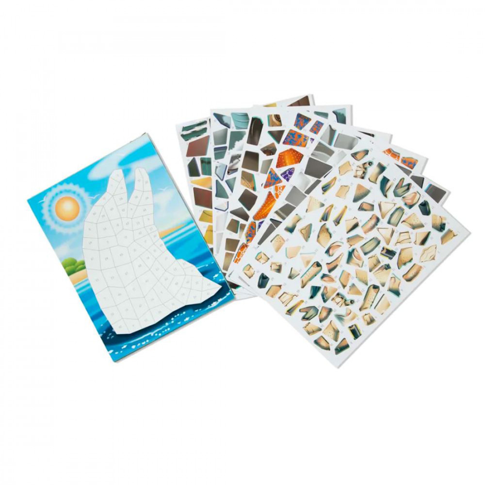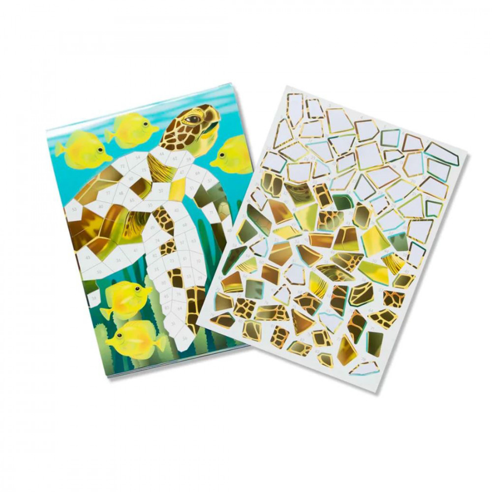 Kreatív mozaik kirakó készlet a Melissa and Doug márkától, melyben tizenkét tengeri állat készíthető el könnyedén. A készlet 850 darabnál is több öntapadós, számozott matricát tartalmaz.