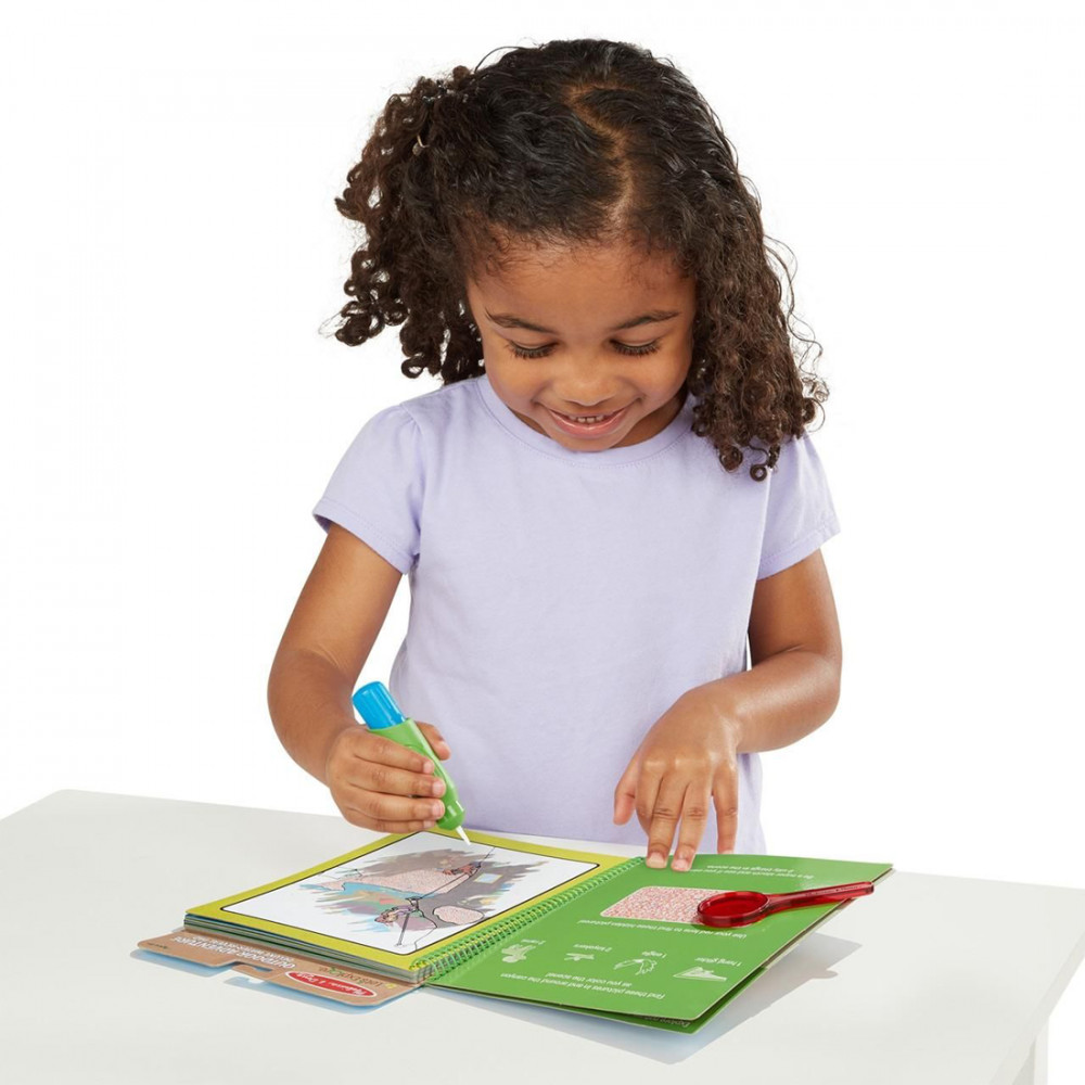 A Melissa & Doug Water Wow kalandok témára épülő kreatív szett, remek szórakozás lehet a kicsik számára. A festős foglalkoztató füzetben tudsz színezni, így a szemed előtt kelnek életre a kinti kalandok. Ezután old meg a feladatokat és keresd meg a rejtett tárgyakat a piros lencse segítségével. A kreatív füzet jól fejleszti a kreativitást és a kézügyességet, akár már 5 éves kortól jó elfoglaltság lehet.