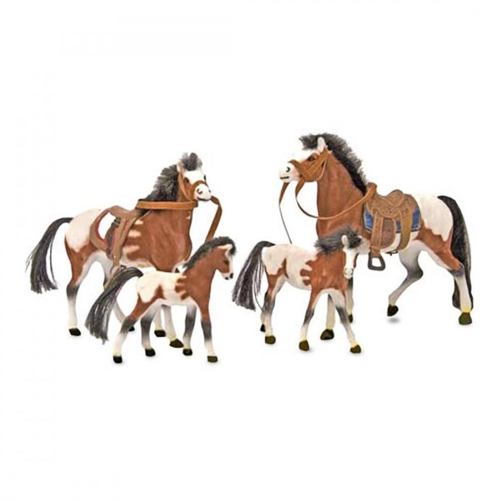 Melissa & Doug Ló Figurák, Paci CsaládEngedd szabadjára fantáziádat ezzel a négytagú Appaloosa pacicsaláddal. Bársonyos tapintással, meglepően élethű mintázattal, sörénnyel és farokkal. A két nagyobbik ló már fel van nyergelve egy igazi kalandos utazásra, a csikók pedig készen állnak a nagy felfedezésekre.