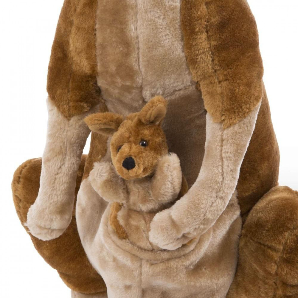 Az élethű kenguru anyuka és csemetéje készen áll a képzeletbeli ugrálásra a gyermeked szobájában. A kenguru masszív fémváz konstrukciója, hosszú farka és tappancsa segítő őt a stabil állásban, míg a kenguru bébi igazán puha és ölelkezős. A kenguru bébi akár felfedező túrára is mehet gyermekeddel, majd ha elfáradt, akkor a mama erszényében meg is pihenhet.Részletek:- a kenguru mama 85 cm magas, 78 cm hosszú és 43 cm széles, míg a bébi 28 cm magas- élethű részletek, mint például az erszény vagy a bébi kenguru- a plüss bundájának igazi kengurut idéző hatása van- a masszív fémváznak köszönhetően a kenguru mama meg tud állni saját lábain- rendkívül puha és igazi ölelkezős játék; nem arra tervezték, hogy a gyermek testsúlyát elbírja