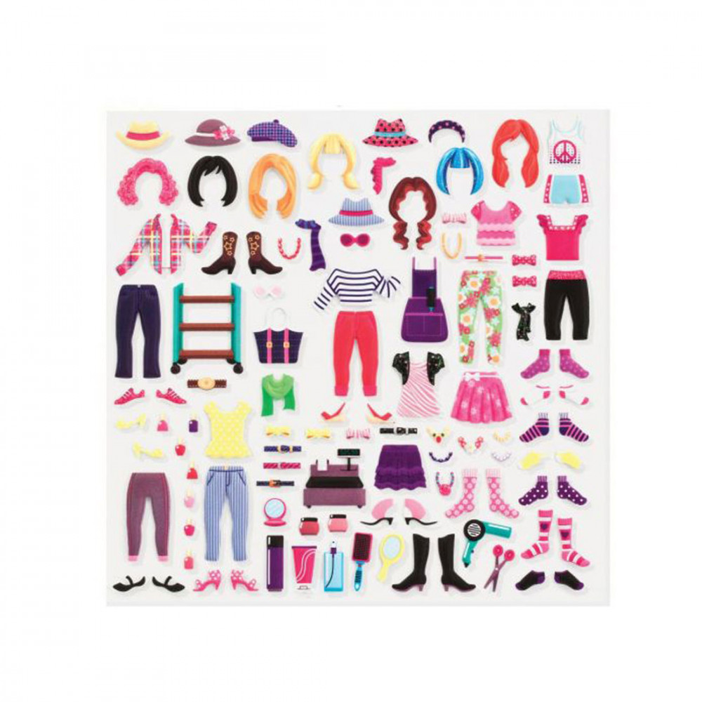 10 oldalas, spirál kötésű foglalkoztató füzet, melynek minden lapja más és más divattal kapcsolatos jelenetet tartalmaz. Mindegyik kiváló háttértörténetet biztosít a karakterek számára. Többek között vásárolással, relaxálással, kényeztetéssel kapcsolatos témák közül választhatsz. Az egyes karakterekre divatos ruhákat, ékszereket ábrázoló matricákat is ragaszthatsz, sőt karaktered frizuráját és hajszínét is megváltoztathatod. Ha meguntad a történetet, akkor lapozz egyet, és vágj bele egy új kalandba. Szedd le a matricákat és használd fel a következő történetedben, egy új oldalon. A 196 újra ragaszható pufi matricákat többek között divatszalonban, cipőboltban, SPA-ban, kozmetikusnál használhatod fel. 4 éves kortól ajánlott.Mérete: 28 x 23 cm.