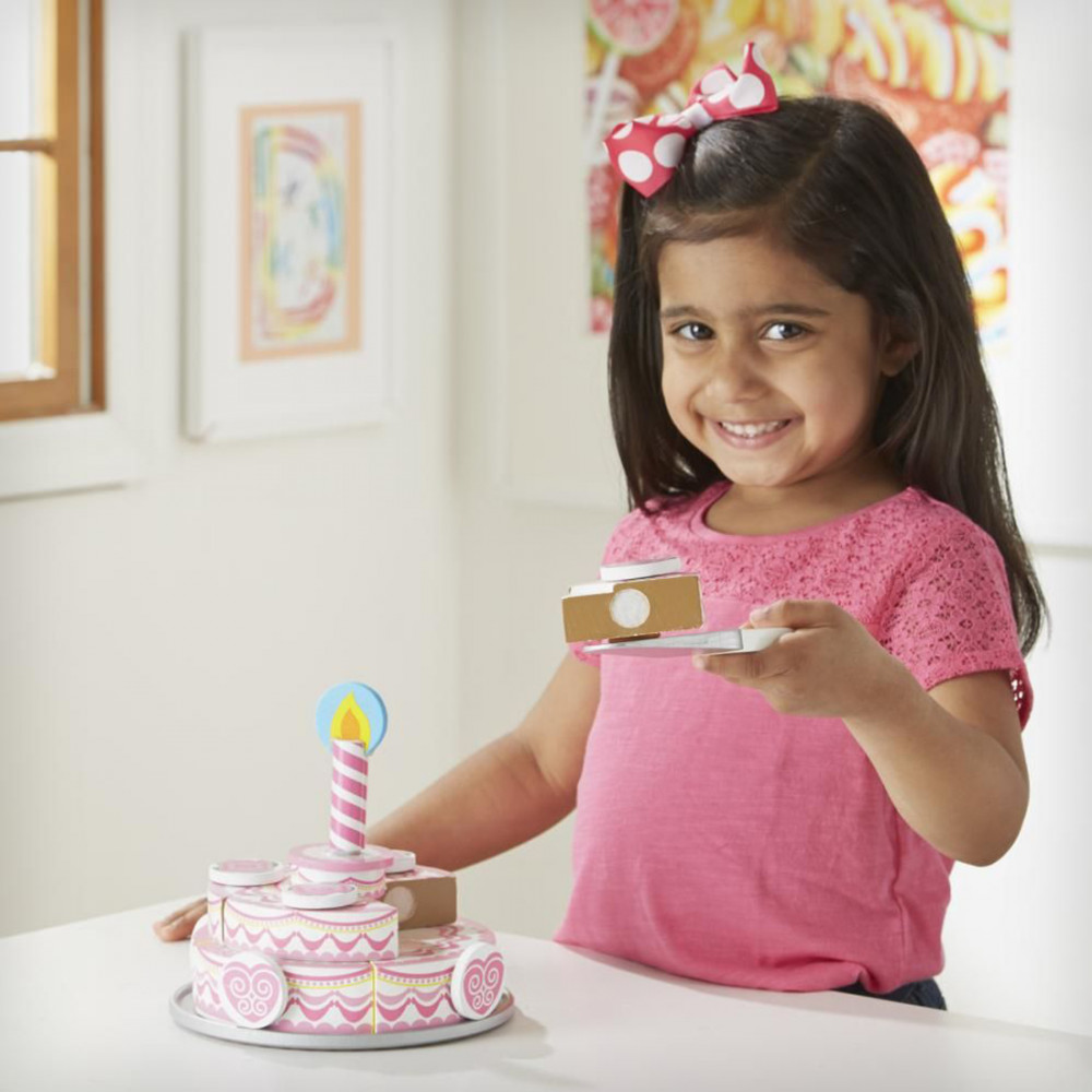Ez a szerepjáték tortakészítő készlet egy igazán különleges tortát rejt, egy igazán különleges alkalomra. Szeletelhető, minőségi fából készült torta, amit 8 szeletre vághatsz fel. A szeletek tépőzárral vannak egymáshoz rögzítve, így vágás közben még hangot is ad ki. Csodás díszítőelemekkel még varázslatosabb tortát készíthetsz magadnak és pajtásaidnak.A játék tartalma:- torta- tálca- 8 db díszítő elem- gyertyaA játék mérete: 33 x 26 x 6cm.