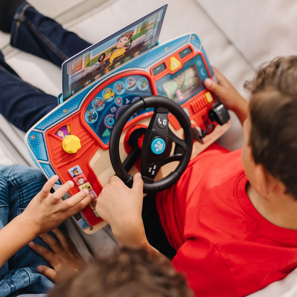 Dobd fel a játékot, és mozgasd meg a fantáziádat ezzel a valósághű játékkormánnyal, amely egy erős fa műszerfalra van szerelve, fényekkel, hanghatásokkal és mozgó alkatrészekkel, köztük egy gördülő GPS-szel!Fordítsd el a kulcsot az indításhoz, és kapcsolj sebességbe, hogy a GPS gurulni kezdjen- forgasd a kormányt, hogy az autó a GPS kijelzőn az úton maradjon! Az interaktív műszerfal a kormánykeréken található kihangosító gombokkal rendelkezik a telefon és a rádió számára, amely négy állomásonként zenét játszik le. A mozgatható alkatrészek és gombok segítségével a hároméves és idősebb gyerekek megszólaltathatják a dudát, beállíthatják a szellőzőket, bekapcsolhatják a jelző,-vész- és fényszórójelzőket, és felpörgethetik a motort.
