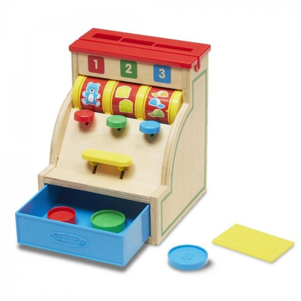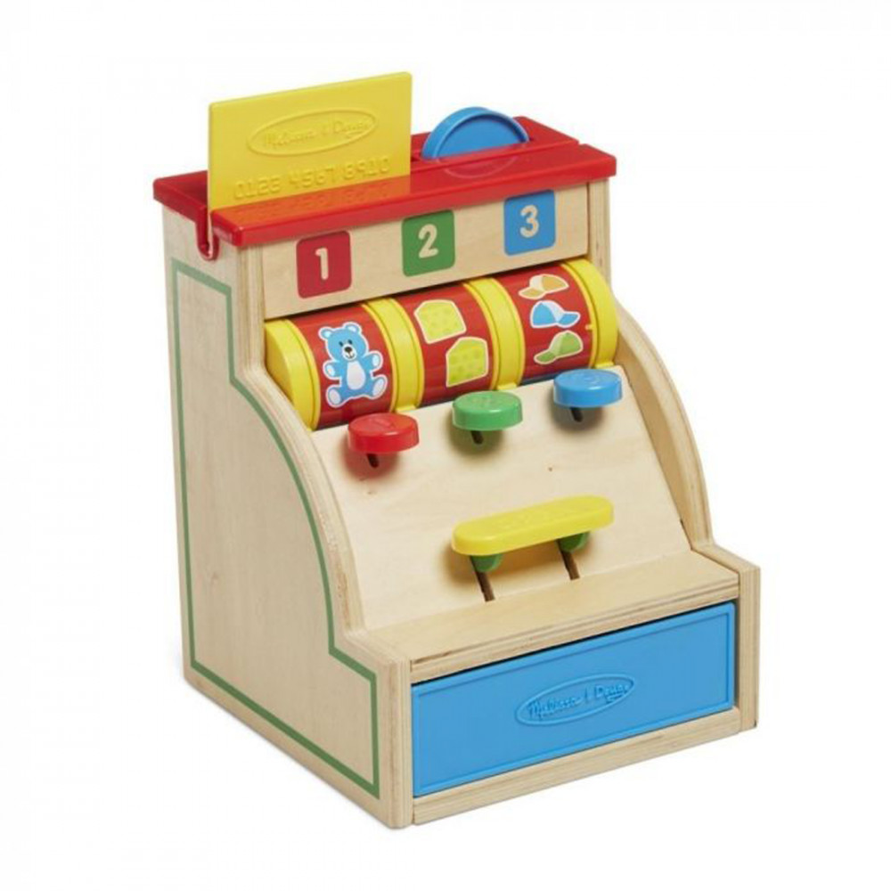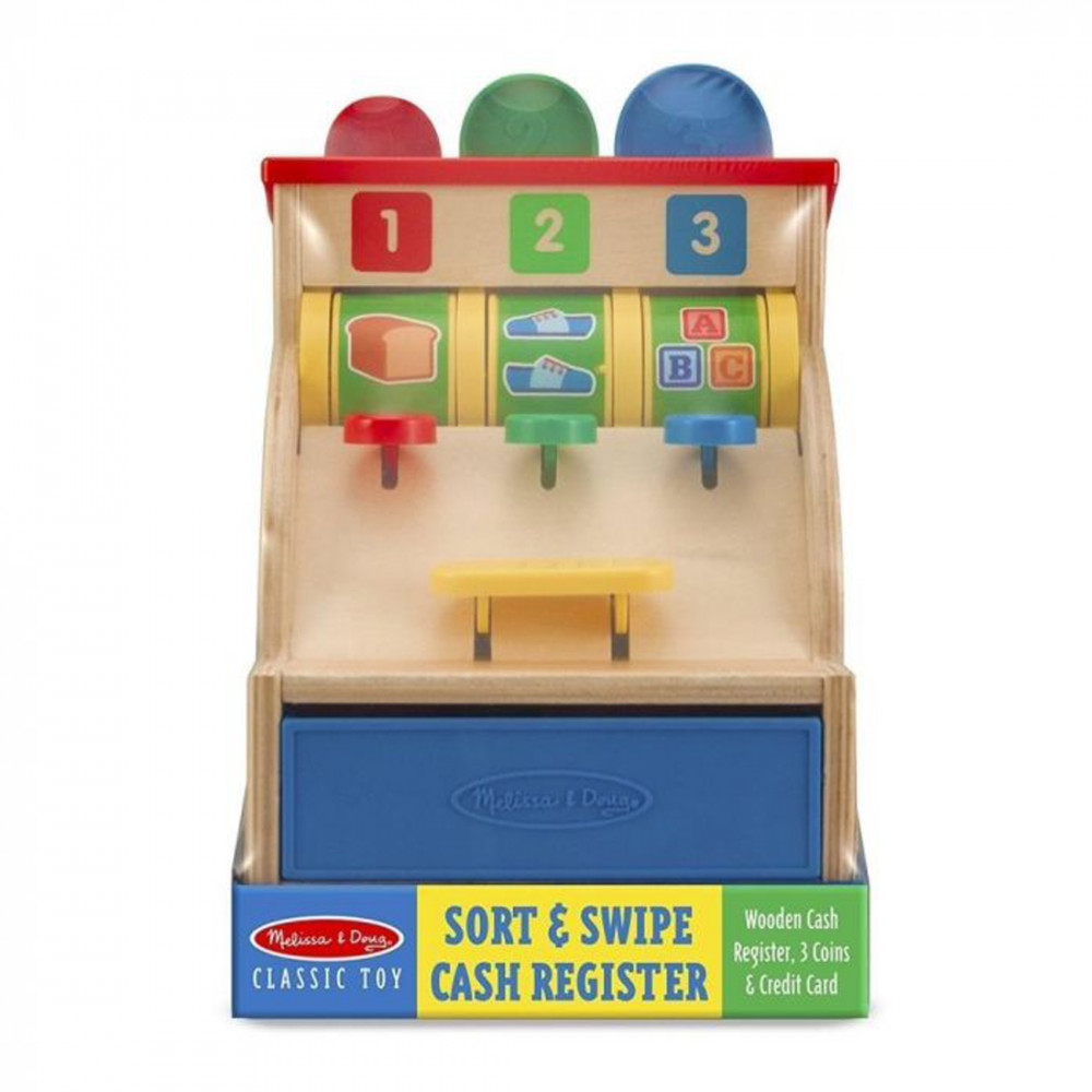Ez a minőségi fából készült pénztárgép egy igazán hasznos, oktatásra is rendkívül alkalmas játék. Nyomd le a pénztárgép egyes gombjait, és különböző számos képek jelennek meg, majd nyomd meg a „Fizetés” gombot és egyenlítsd ki a vásárlást a pénzérmékkel. Ezek az érmék méretükben és vastagságukban is eltérnek egymástól, így az 1-es érme csak az 1-es lyukba fér be, míg a 2-es érme a 2-es és a 3-as érme a 3-as lyukba…, melyek közvetlenül a kijelző felett láthatóak. Hogy gyermeke tényleg teljes mértékben utánozni tudja szüleit, egy játék hitelkártyát is le tud húzni gyermeke!- pénztárgép 3 számozott érmével és játék bankkártyával- nyomd le a gombokat, hogy az érmék a kasszába essenek, és a képkerék felpörög- a bankkártya szimulálja a lehúzás hangját- tartós fából készült szerkezet- ösztönzi a számok és színek felismerését, a finommotoros készséget, a problémamegoldó valamint a képzeletbeli játékotMéretei: 22,8 x 16,5 x 16,5cm