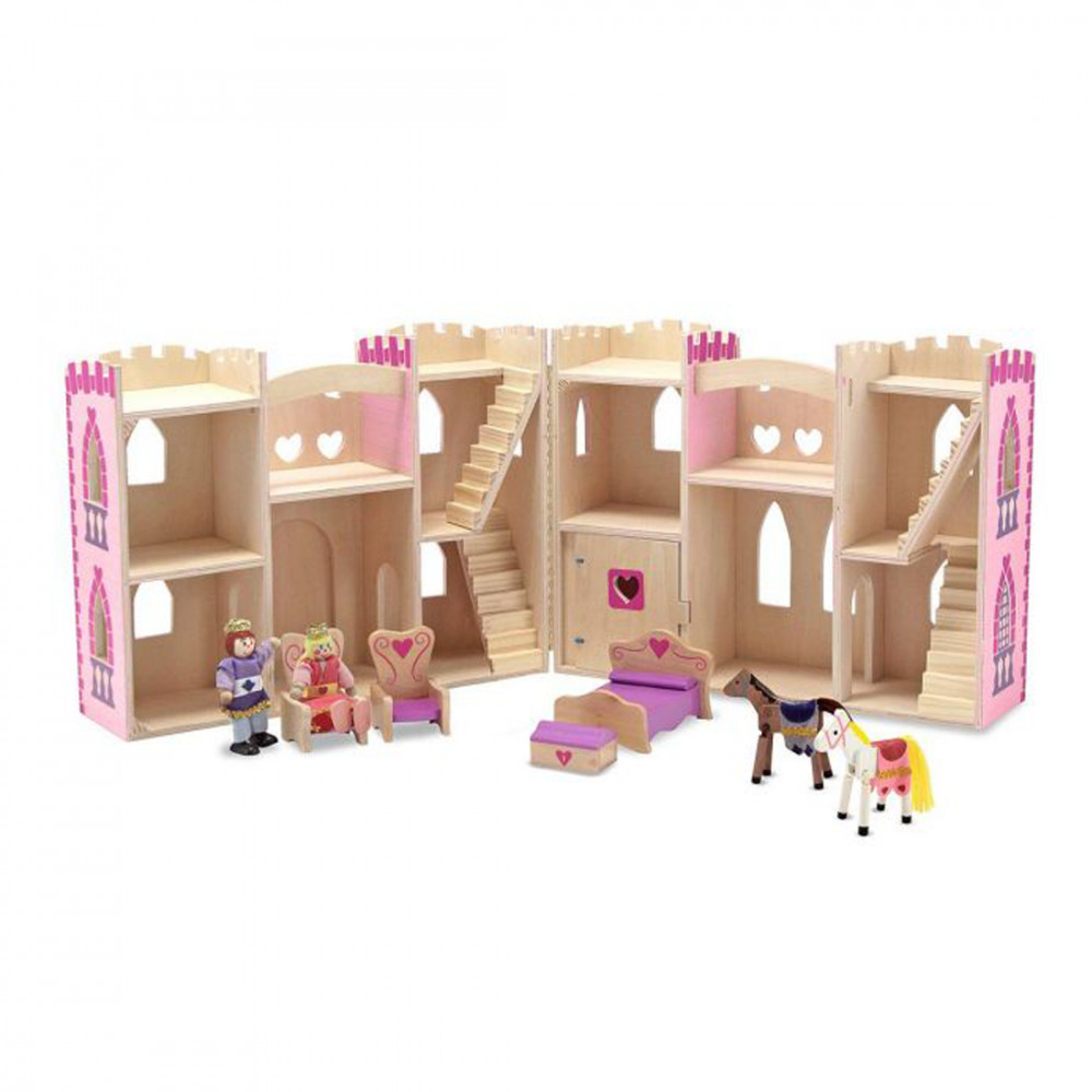 Ez a bájos, minőségi fából készült, hordozható füllel ellátott kastély kiváló játéka lehet a kis hercegnőnek. A csodásan és aprólékosan díszített kastélyban 4 db királyi bútor található, köztük egy öltözőasztalka is. Természetesen a hercegnek és hercegnőnek vannak lovai is, így örökké élhetnek itt, míg meg nem halnak. Ajánlott 3 éves kortól.A termék méretei: 37,3 x 29,2 x 20,3 cm.