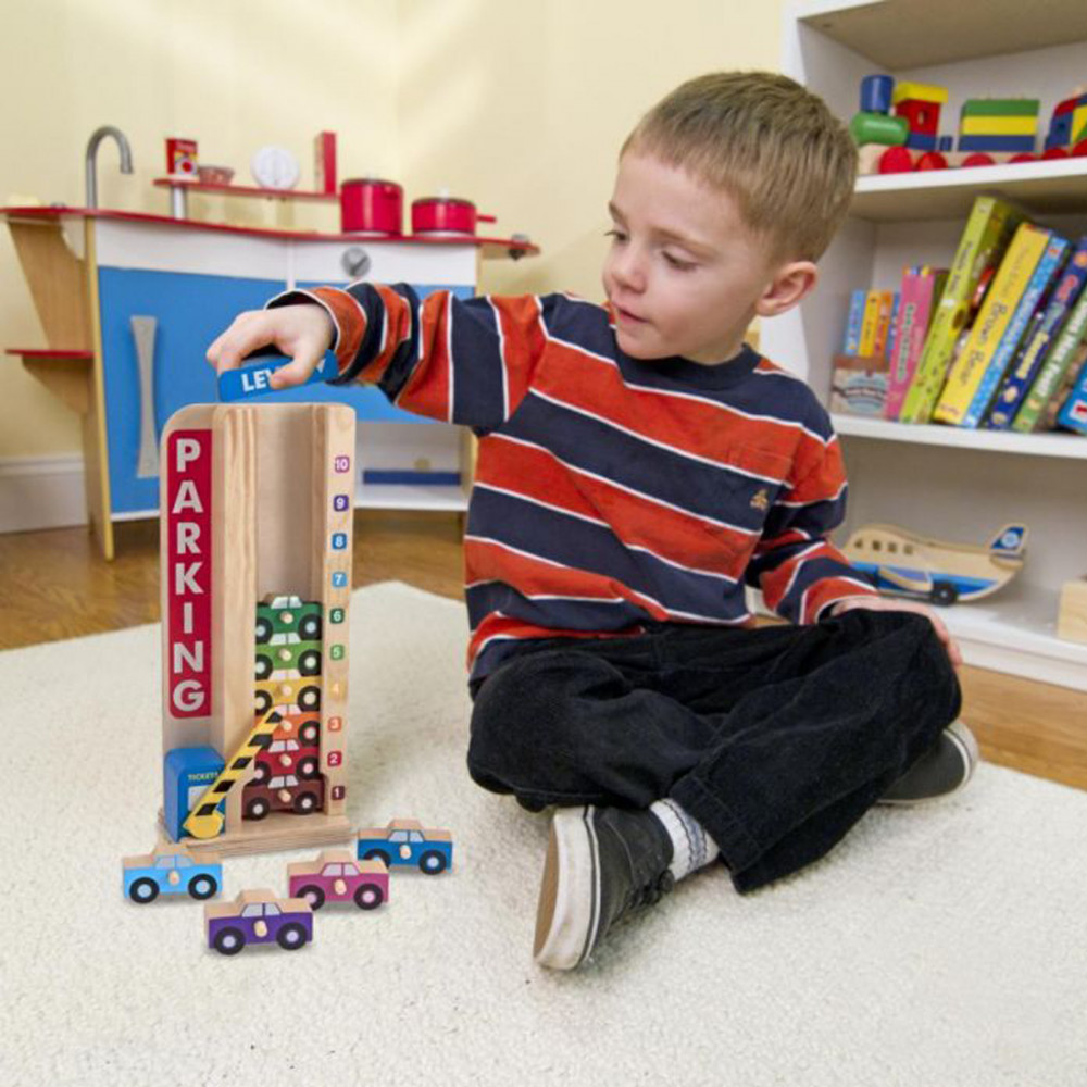 Parkolj le 10 kisautót ebbe a fából készült parkoló toronyba, és tanulj meg számolni és párosítani! A kék szintező elem megmutatja Neked, hogy hány autó van a parkolóban, de akár Te is megszámolhatod őket. Húzz ki egy autót alulról és a szintező elem is lejjebb csúszik. 3 éves kortól ajánlott.Tartalmaz:- 10 db fából készült autót- parkoló tornyot- szintező elemetMéret: 30.48 x 13.97 x 6.35 cm.