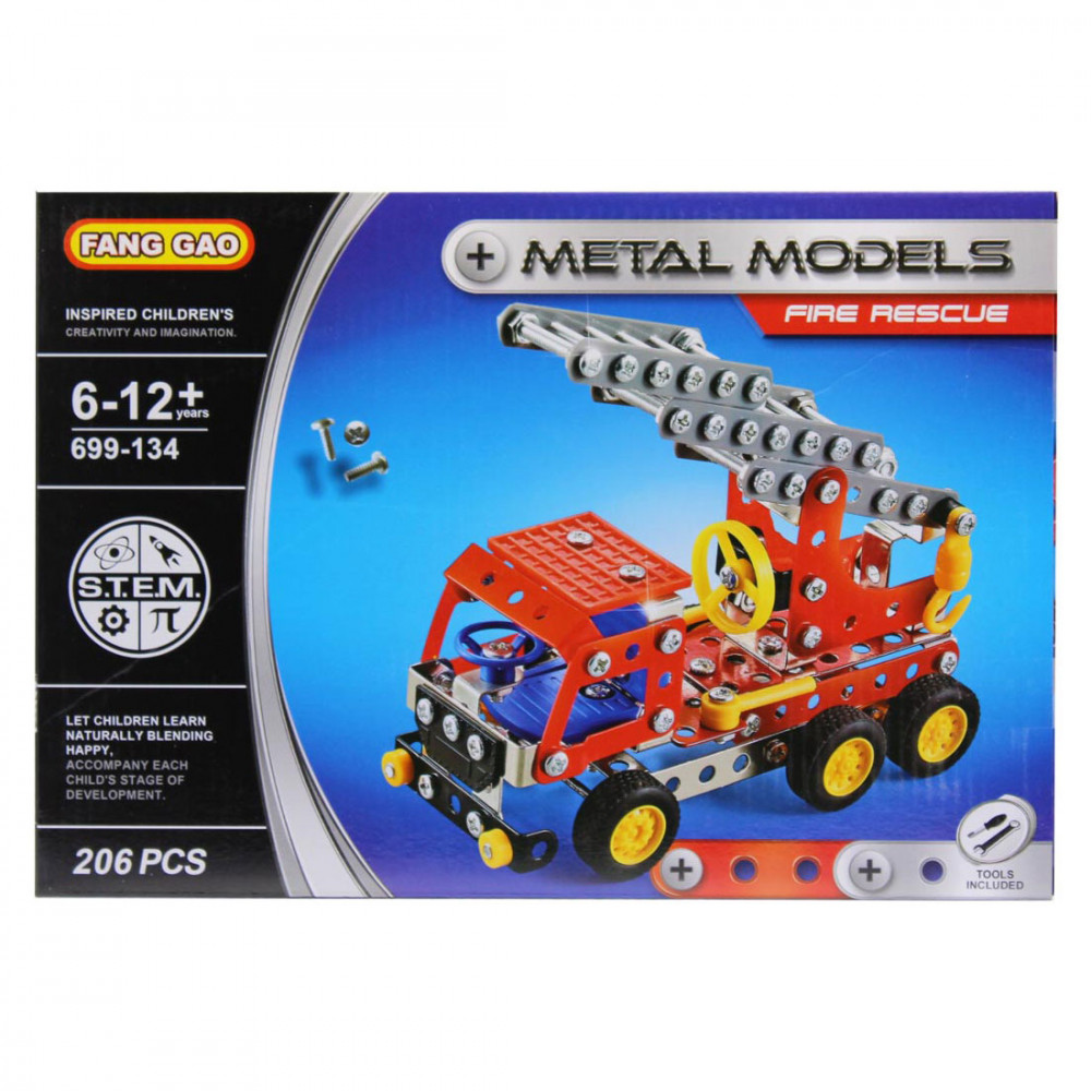 Szuper létrás tűzoltóautót rakhatsz össze a fém építőkészlettel. Az alkotás azért jó, mert maga a munka is örömteli, és a végeredmény is klassz, amit büszkén megmutathatsz minden barátodnak. A készlet 206 elemből áll, és az összeszereléshez szükséges szerszámokat is megtalálod benne.