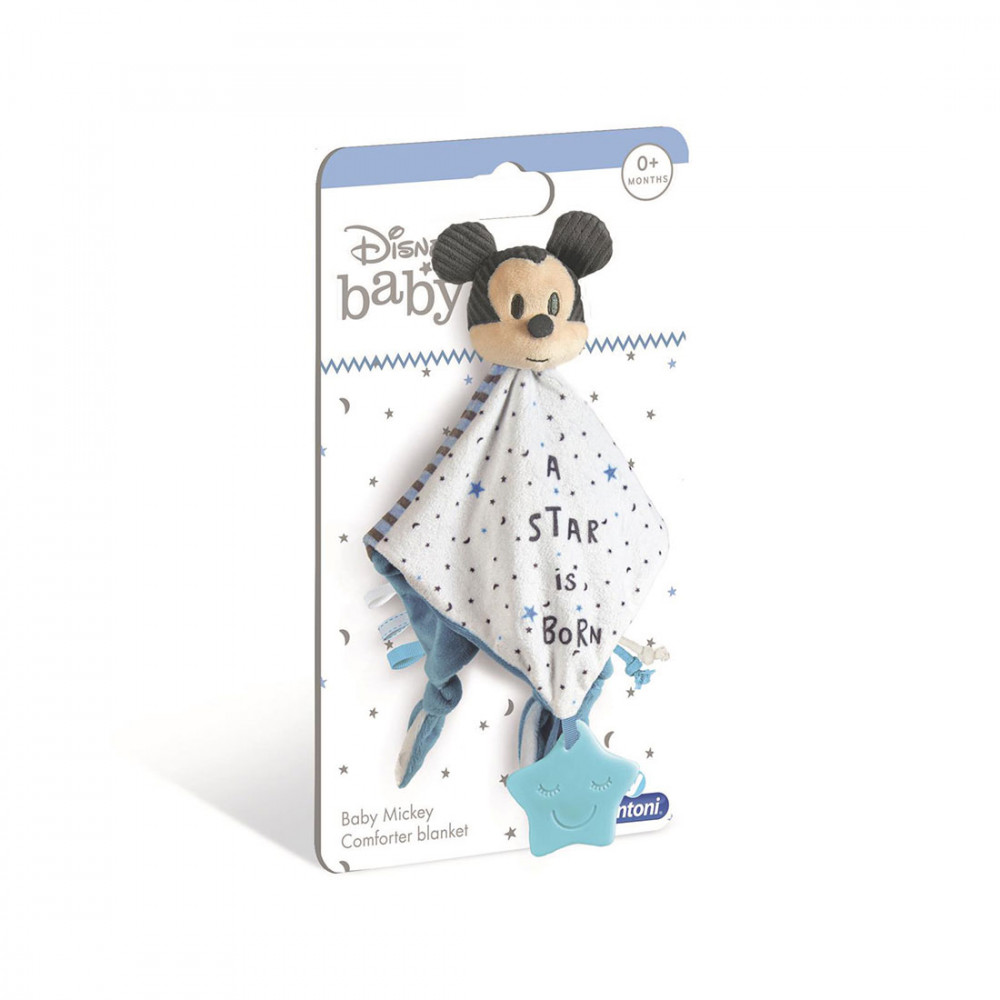 Lágy pasztel színeivel színeivel, puha anyagával a Clementoni Mickey plüss nyálkendő rágókával hívogatóan hat a kicsik érzékszerveire. Az elsősorban morzsolgatható játék, a figura felfedezésére ösztönzi tulajdonosát. A kendőn egy szilikon medál van, ami a fogzásban lévő babák számára rágókaként funkcionál.