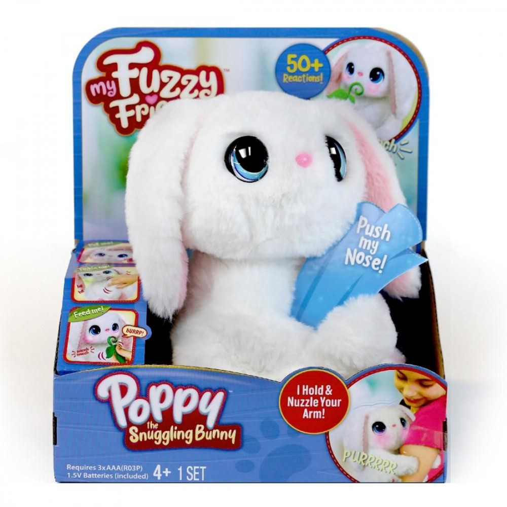 Ez a My Fuzzy Friend Interaktív mozgó plüss nyuszi igazán ölelnivaló plüss kedvenc. Imád téged és ezt több mint 50 féle reakció kifejezésével adja tudtodra. Mancsát kinyitva boldogan ölel át és vidám, falatozó hangokat hallat, mikor szájához érinted kedvenc ételét. Ha szeretnéd megnézni, hogy szimatol, csak érintsd meg az orrát.