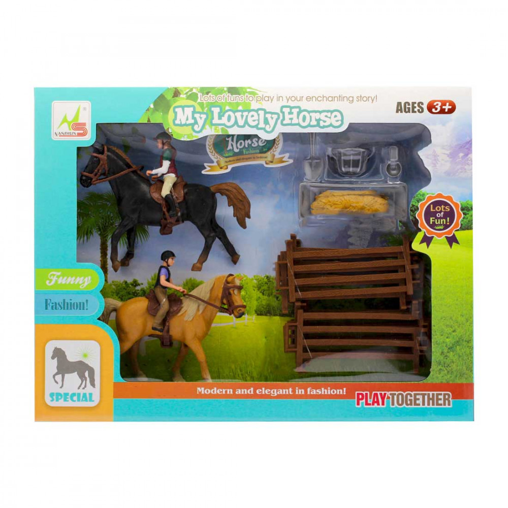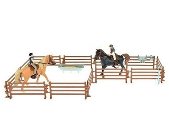 Ebben a lovas farm készletben két lovat találtok lovassal, és egyéb kiegészítőket.Állítsátok fel a karámot, pattanjatok a nyeregbe, és nyargaljátok be a környéket!