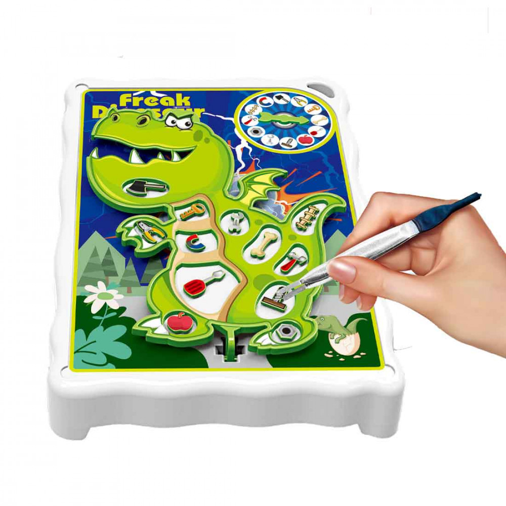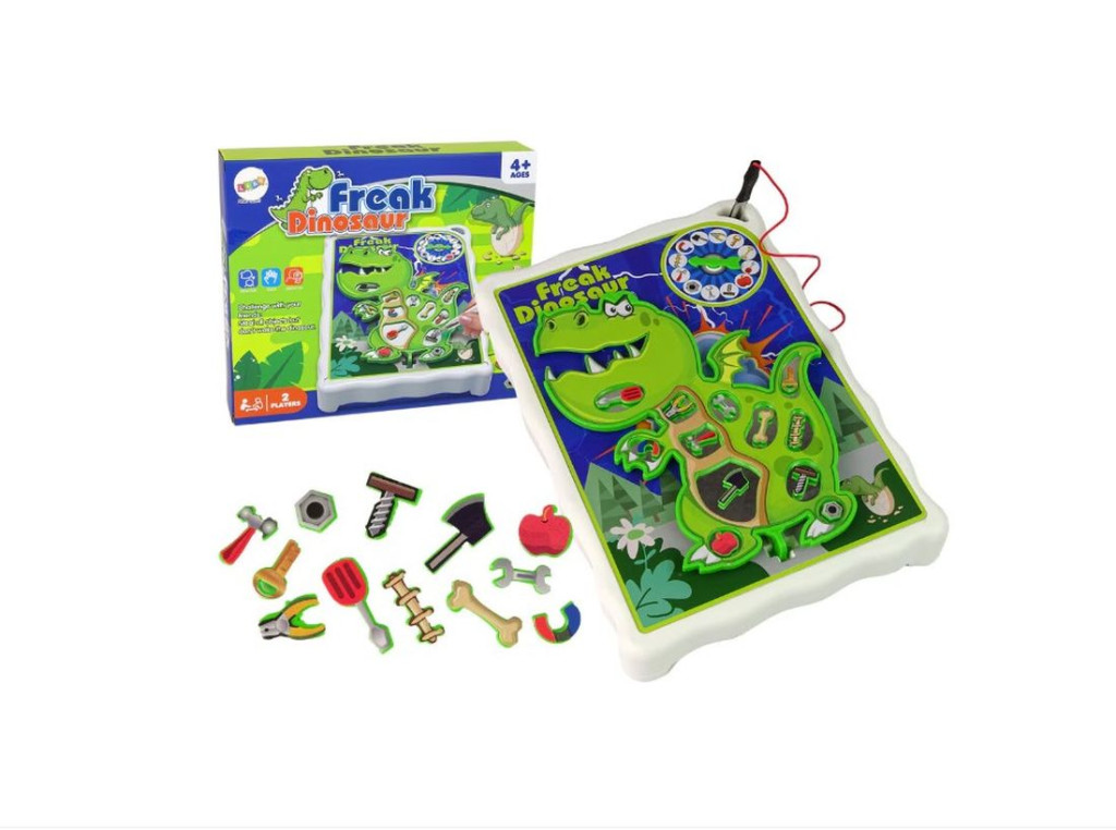 A Freak Dinosaur - Operálós, dínós ügyességi játék a gyerekek kedvenc kihívása, ahol az izgalom és a precizitás találkozik! A játék során egy őskori hős bőrébe bújhatsz, miközben megpróbálsz apró tárgyakat "kimenteni" a dinoszaurusz testéből – de vigyázz, mert ha nem vagy elég ügyes, a dínó felébred, és a móka véget ér!