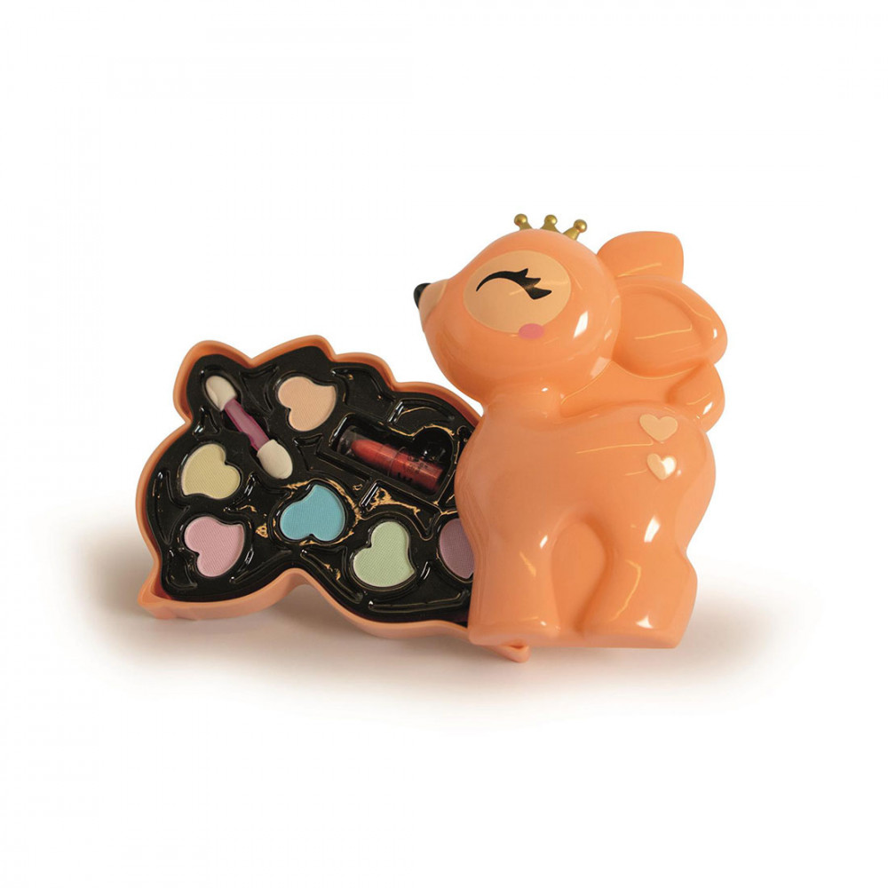 Egy őzike formájú sminkdoboz, kompakt formátumban, hogy a kislányok mindig magukkal vihessék, és egy lágy árnyalatokból álló palettával a természetes, mindig divatos megjelenésért. A szett tökéletesen alkalmas arra, hogy a a gyerekek a hátizsákjukban vagy táskájukban tartsák, hogy minden pillanatot a kreatív és szórakoztató játék lehetőségévé változtassák, amit megoszthatnak a barátaikkal.