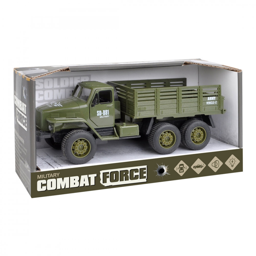 Fedezd fel a katonai teherautó izgalmait! Elektronikus hang- és fényhatásokkal, 20x10 cm-es méretben.