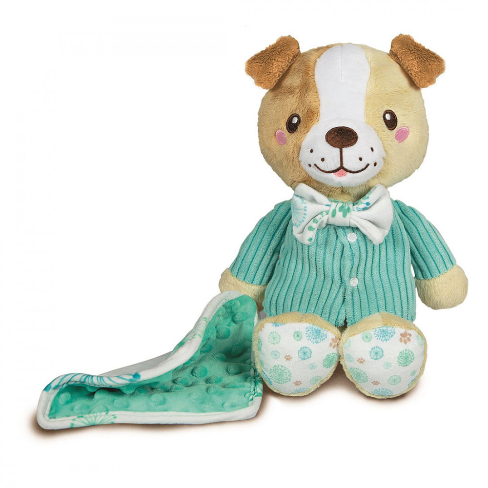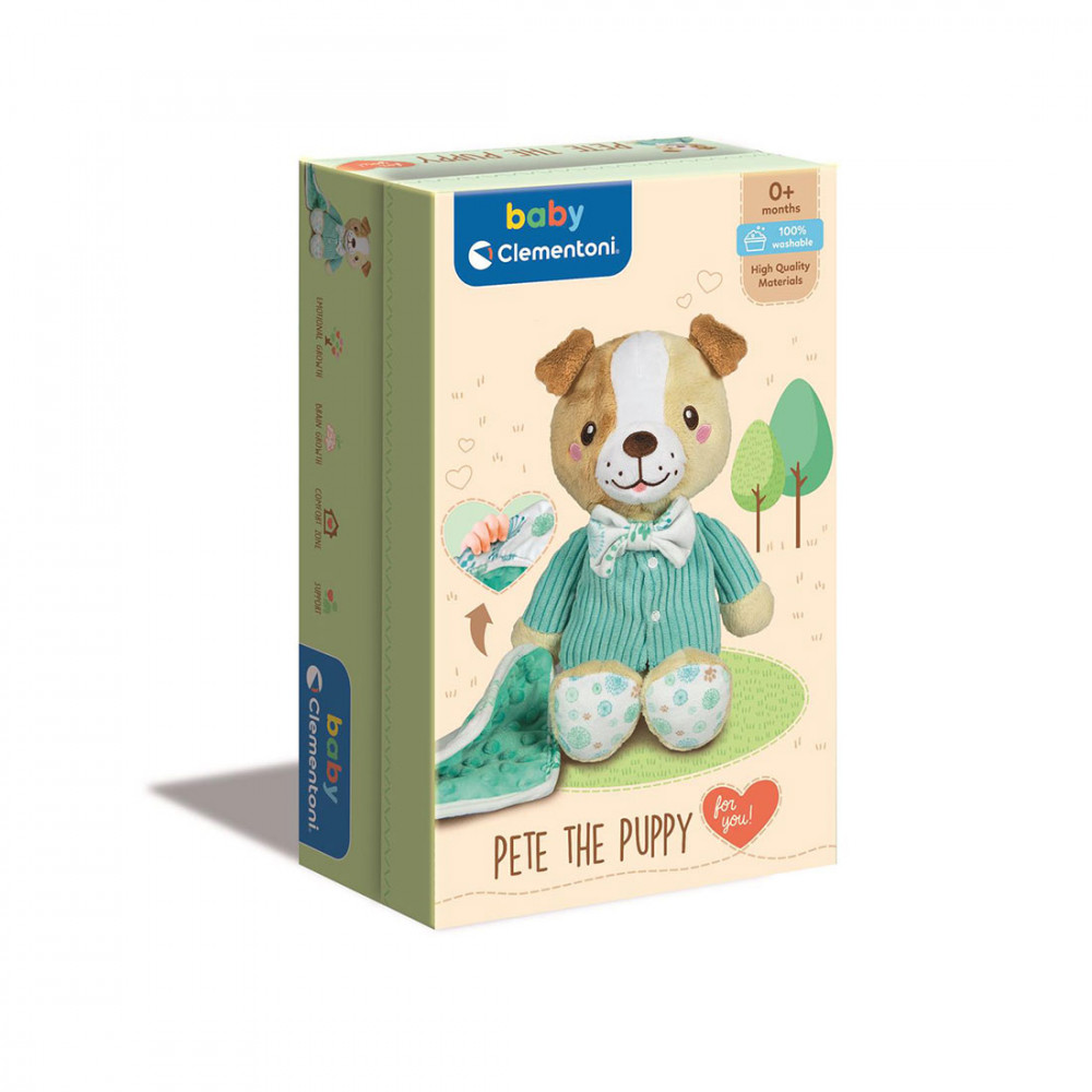 Pete, a cuki plüss kutyus gyermeked hű társa lehet. A plüss különböző textúrájú anyagból készült, így a tapintás során remekül fejleszti gyermeked szenzoros képességét. A kutya kezében egy kis takaró található, amely magába gyűjti az illatokat. Ez nagyon hasznos lehet, hisz így babád érezheti az illatodat, ami megnyugtatja őt. A kiskutya egy dobozban érkezik, melynek belseje különleges mintával nyomott, melyet a plüssel való játszás során használhatunk, de akár újra, más célra is felhasználható.