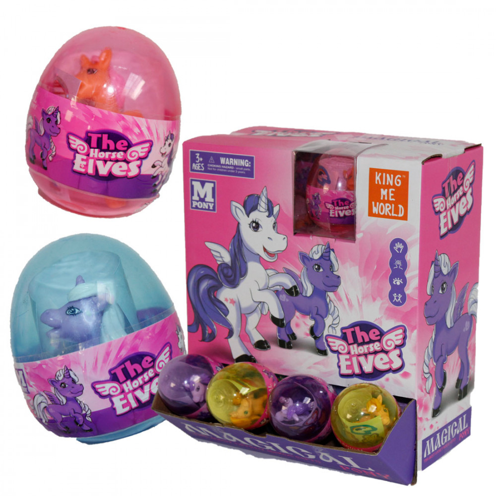 A játék 4 féle színben kapható. Más-más színű tojás és a benne található póni figura is. A tojás nyitható és egy elbűvölő unikornis figura található benne, vidám, képes matricákkal.